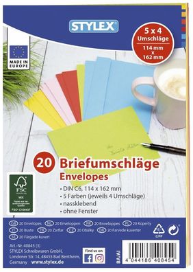 • STYLEX® 40845 Briefumschläge - C6, ohne Fenster, nassklebend, 20 Stück sortirt