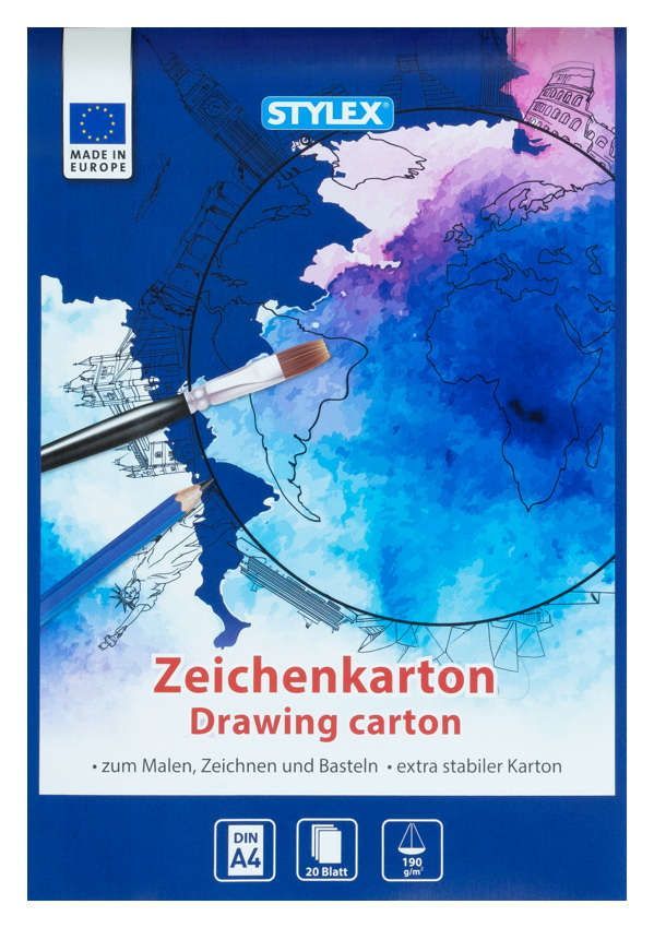 Stylex 46727 Zeichenkartonblock, DIN A4, 20 Blatt, 190 g / /² - weiß