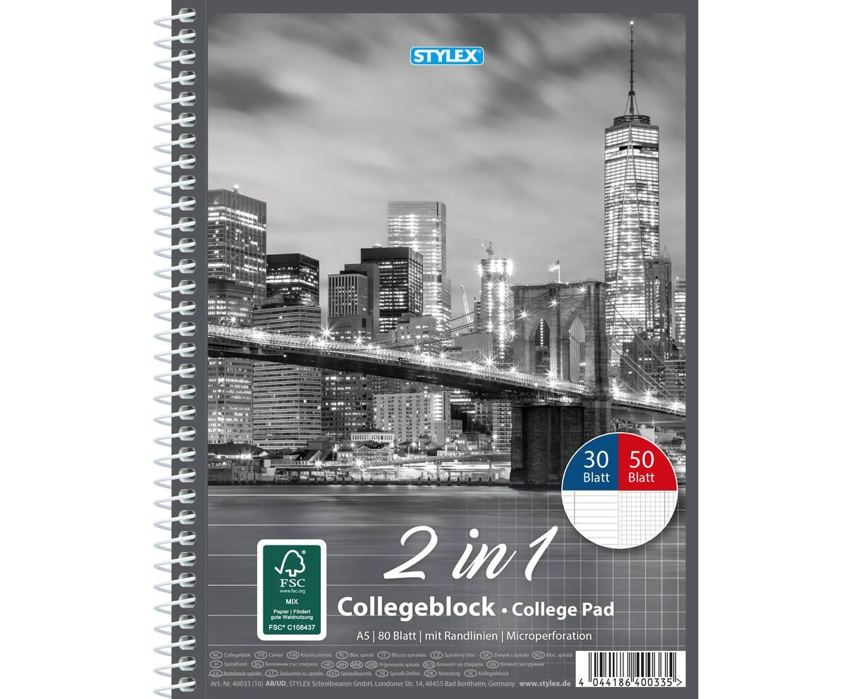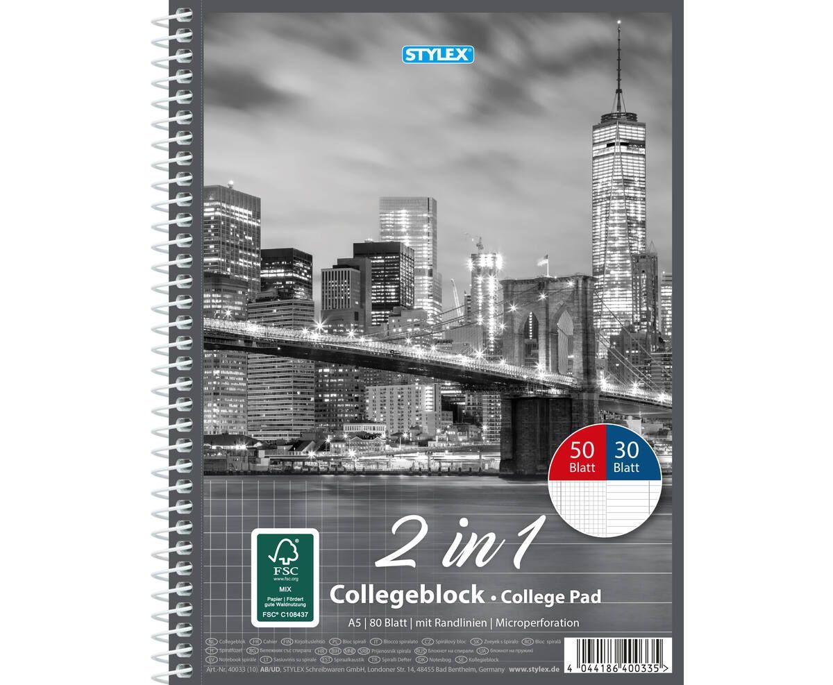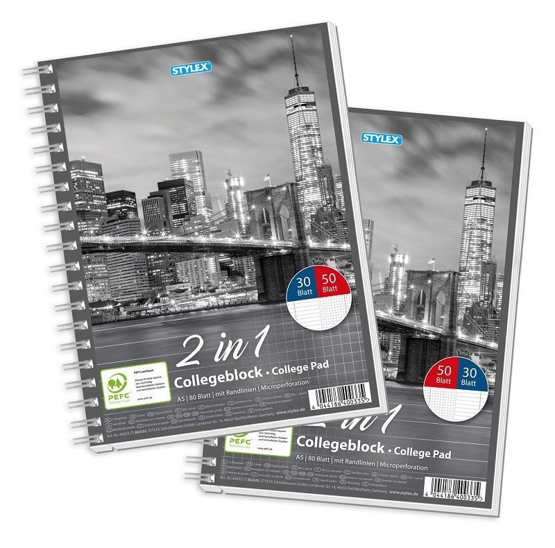 Stylex Collegeblock DIN A5, Duo, 30 Blatt liniert / 50 Blatt kariert