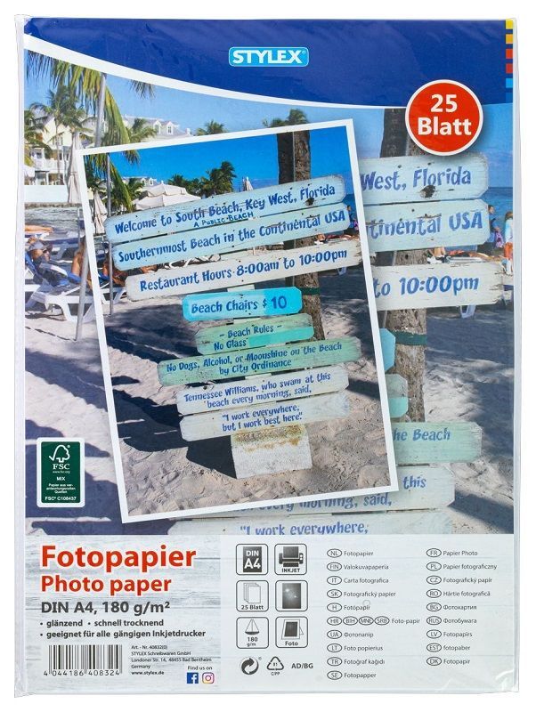 Stylex Fotopapier, DIN A4, 180 g, 25 Blatt - glänzend, für Inkjet/ Tintenstrahl