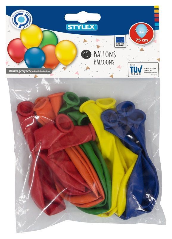 Stylex Luftballons, Umfang 75cm, Helium geeignet, 15 Ballons
