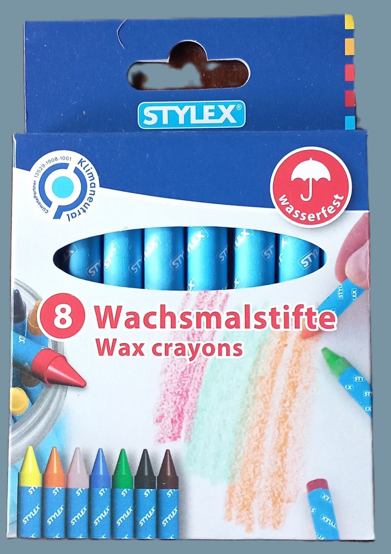 Stylex Wachsmalstifte, 8 Stück mit Papierbanderole Wasserfest