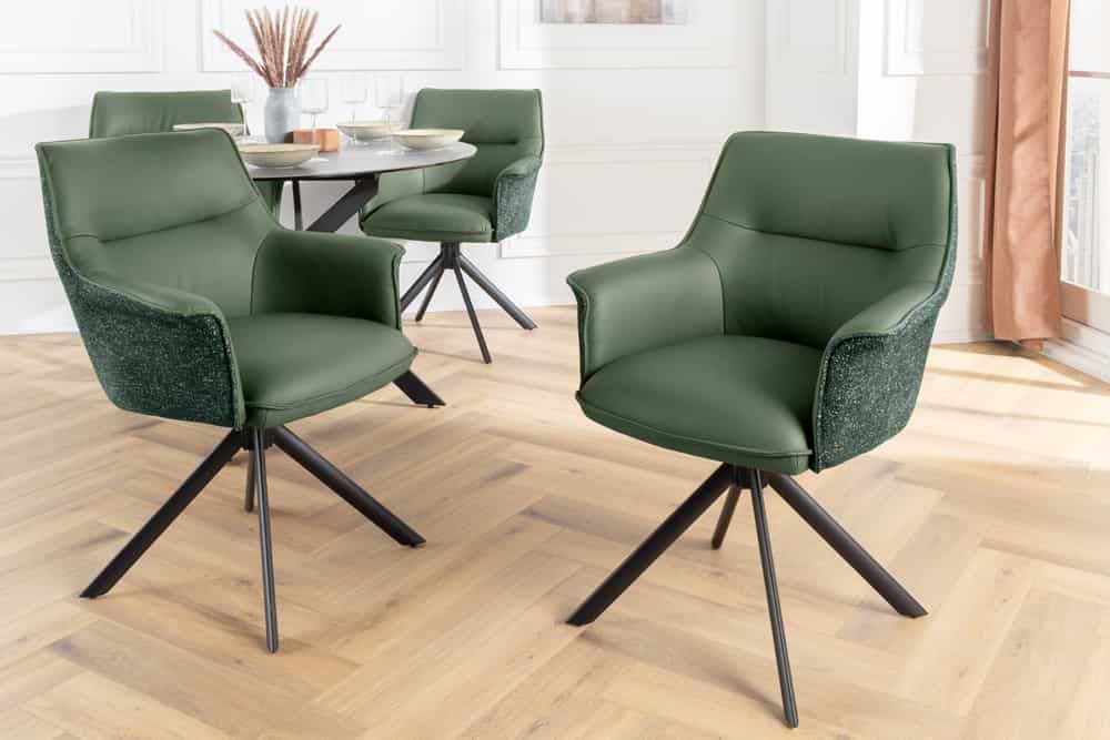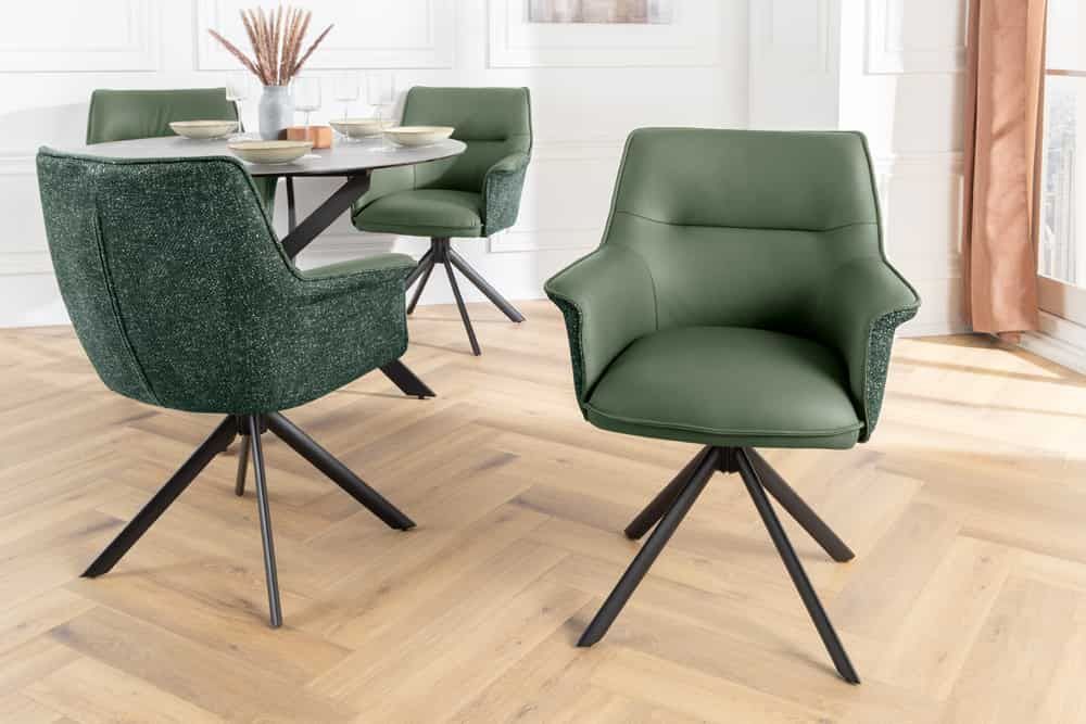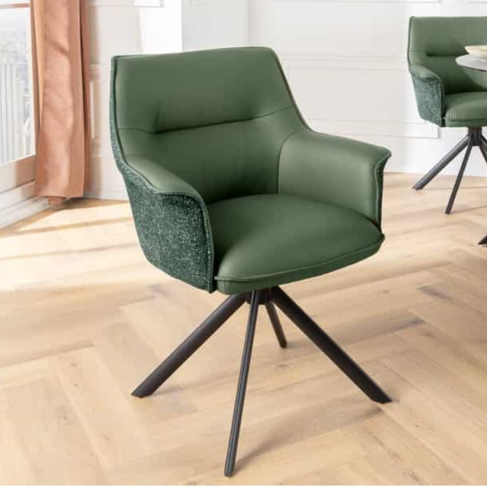 Stylisch drehbarer Echtleder Stuhl GEORGE grün mit Armlehne Strukturstoff