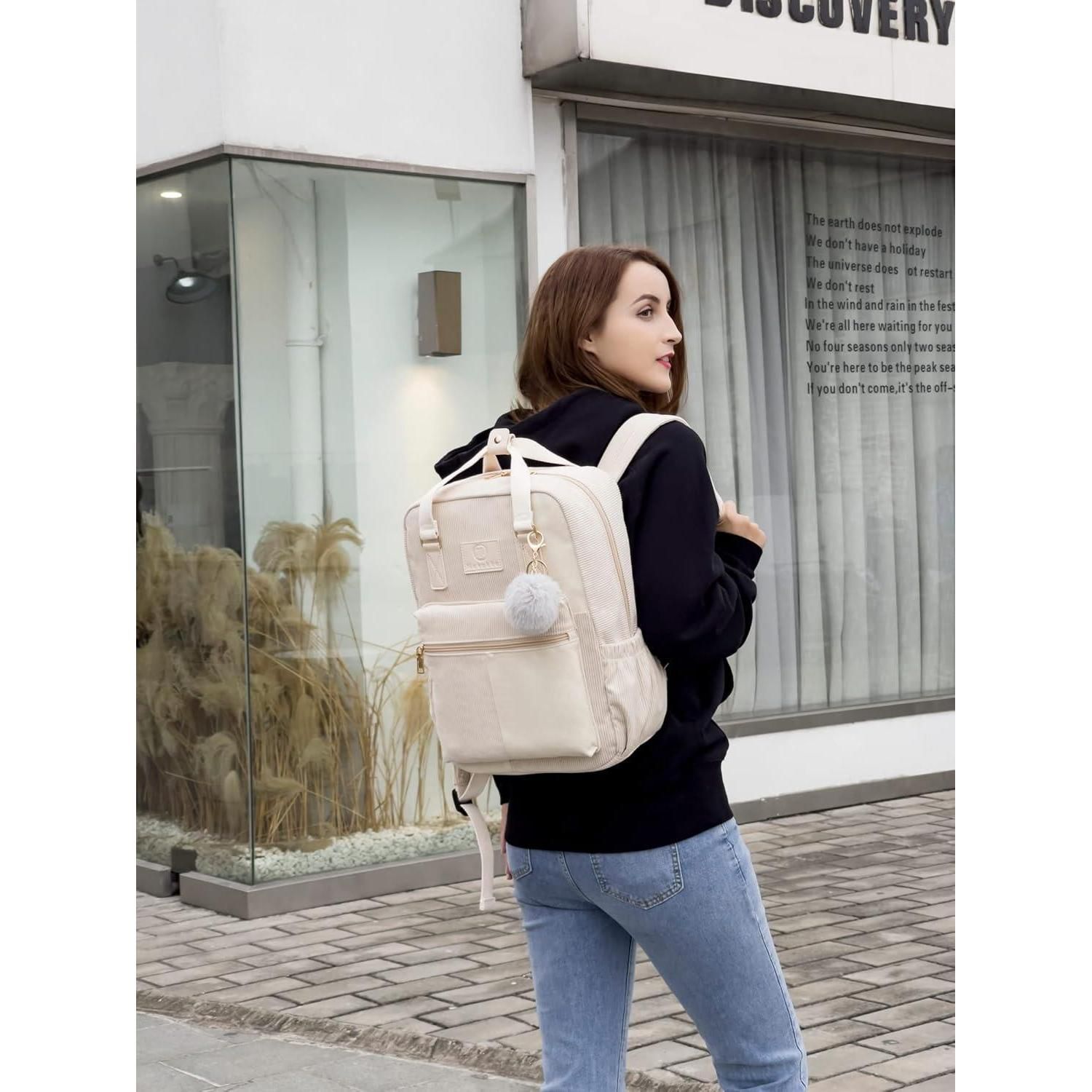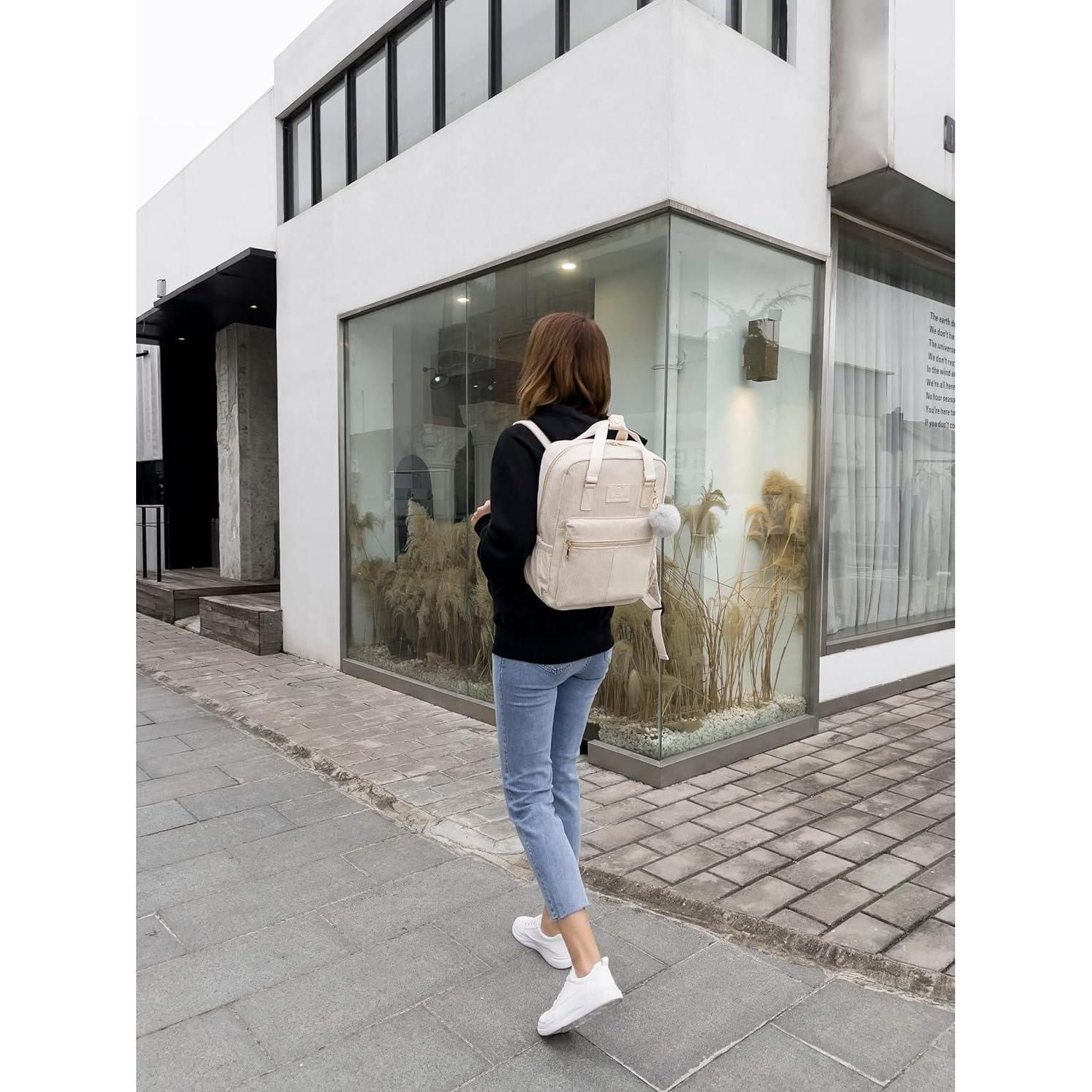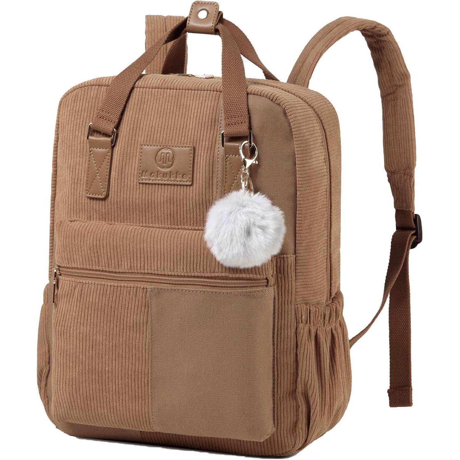 Stylischer Makukke Cord Rucksack Damen Herren Anti-Theft Daypack braun