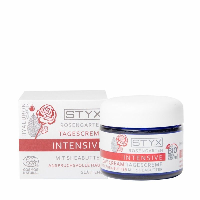 Styx Naturkosmetik - Rosengarten INTENSIVE Tagescreme - 50 ml Für anspruchsvolle Haut Die hochwertigen Wirkstoffe der Shea Butter und des Hyalurons glätten, pflegen und schützen die Haut. Die ausgleichende Tagespflege für mehr Spannkraft und Elastizität.
