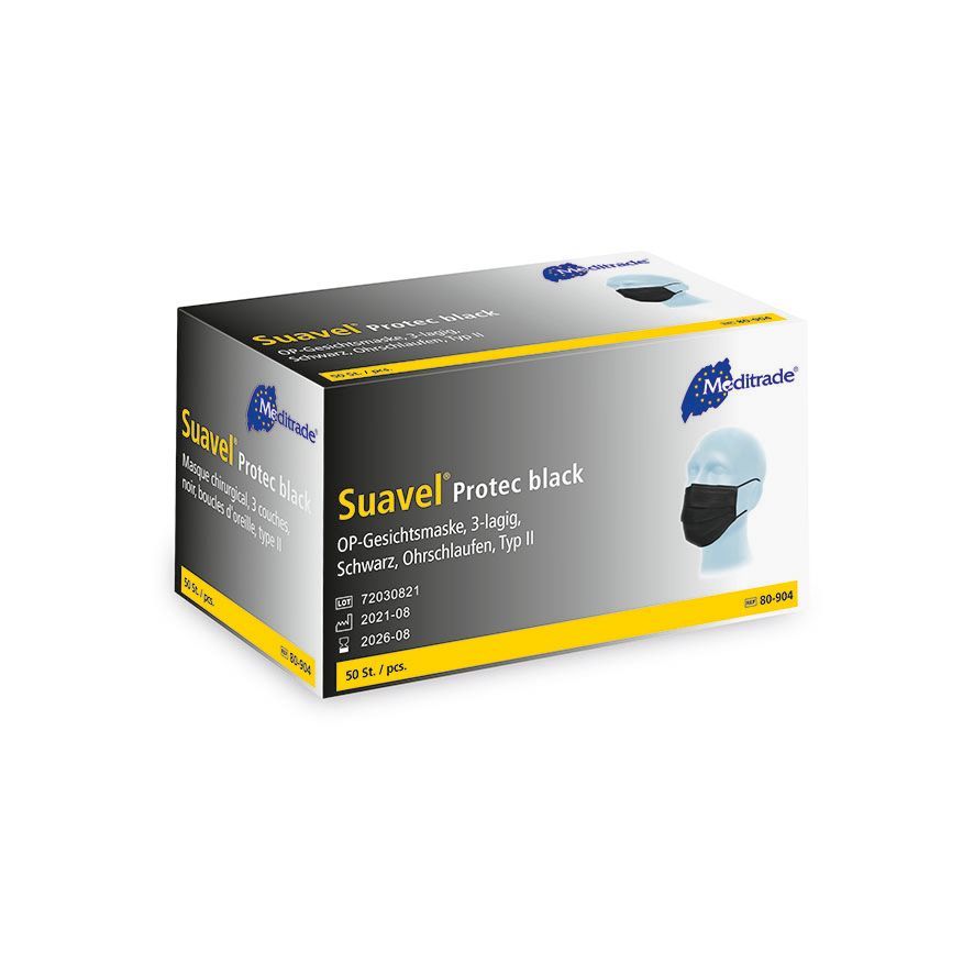Suavel Protec Black OP-Maske Typ II Mundschutz elastische Ohrschlaufen Schwarz 50 Stk