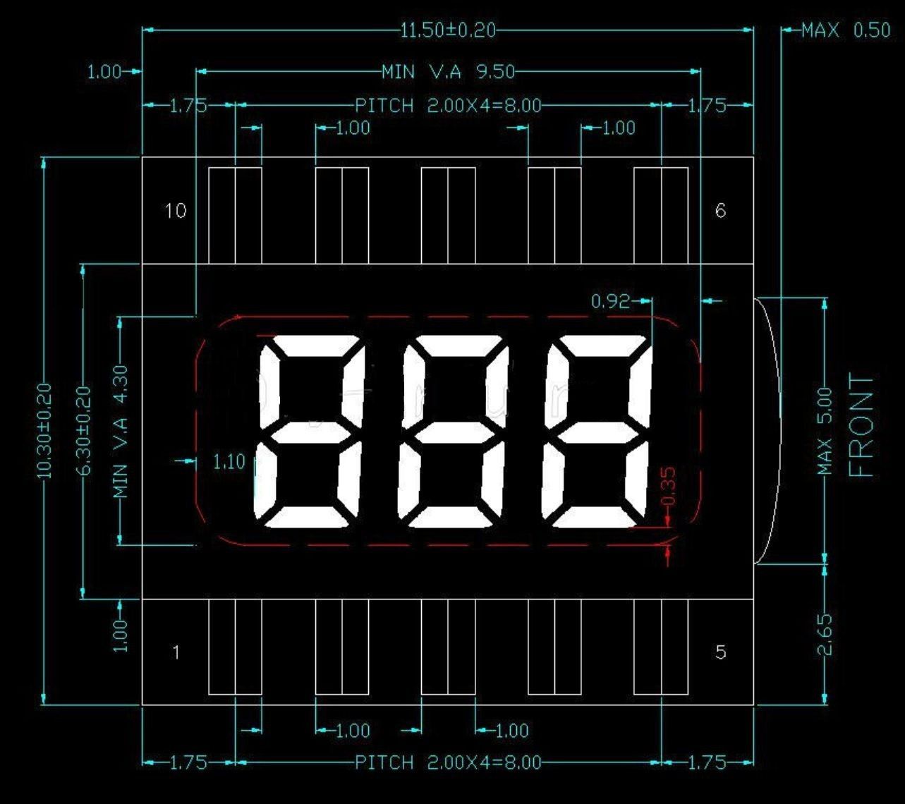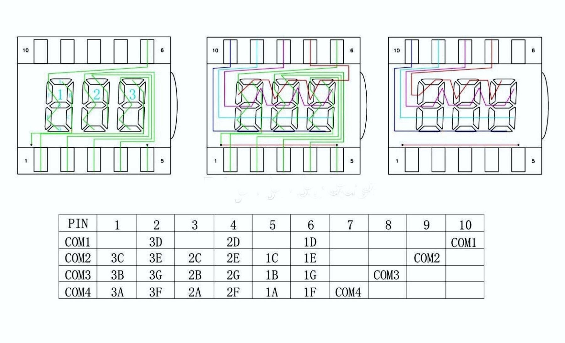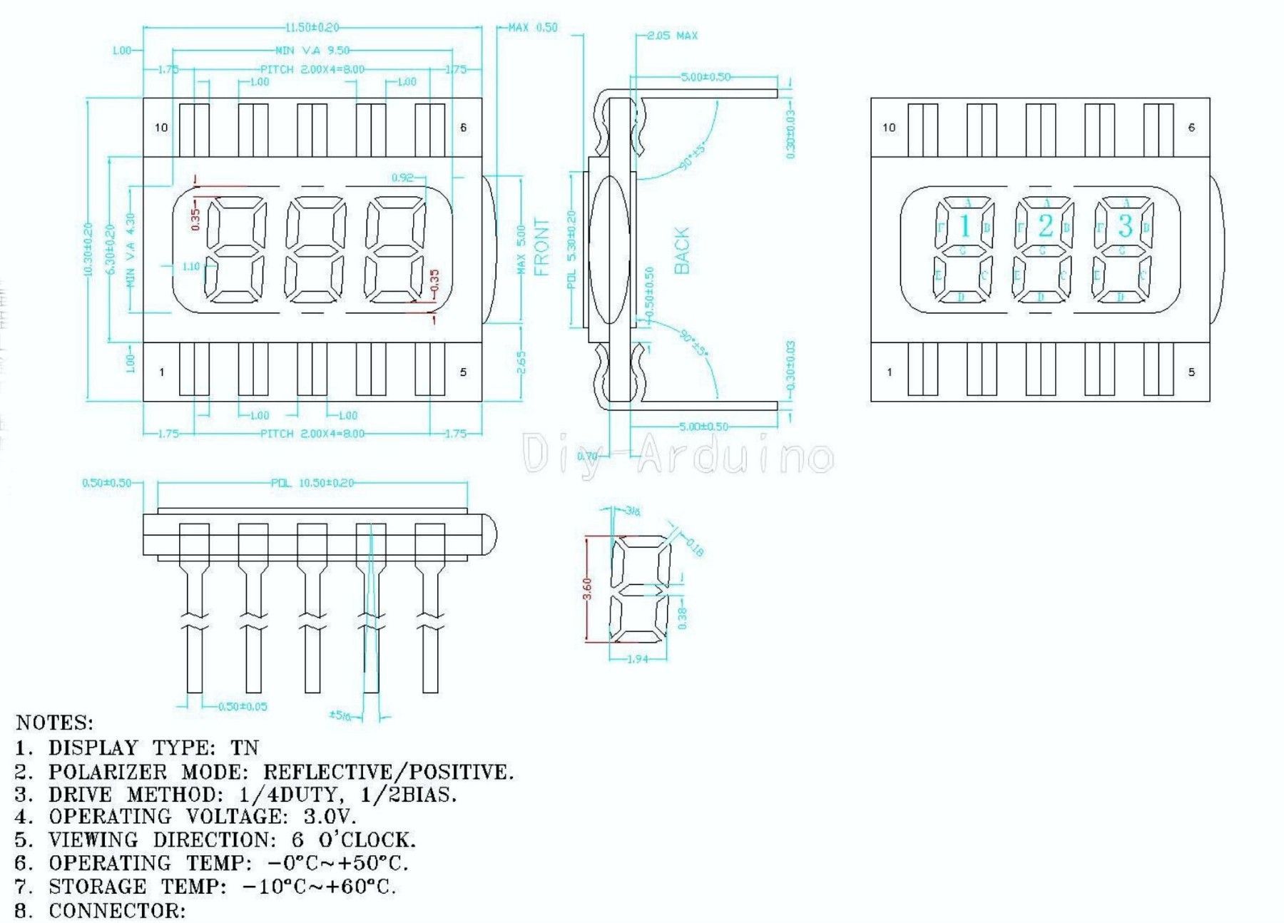 Sub-Miniatur LCD 7-Segment-Anzeige, Display, 3-stellig, 3Volt, 10-Pin