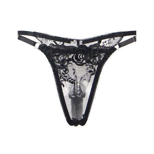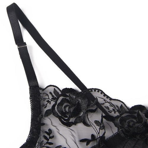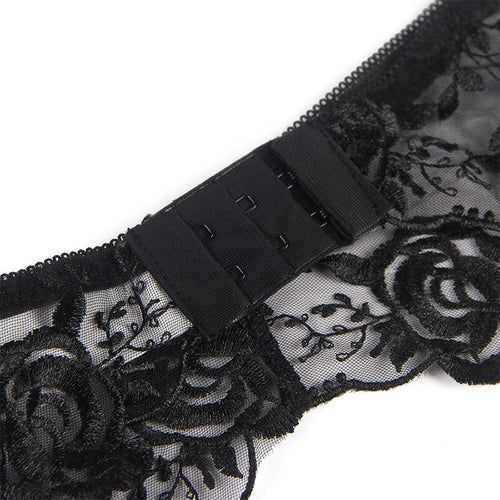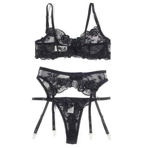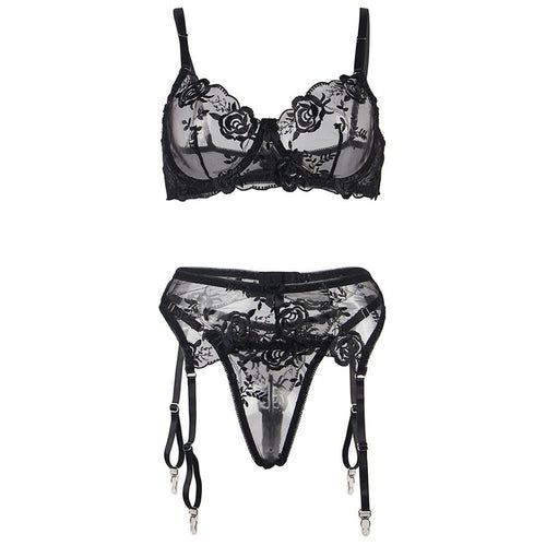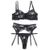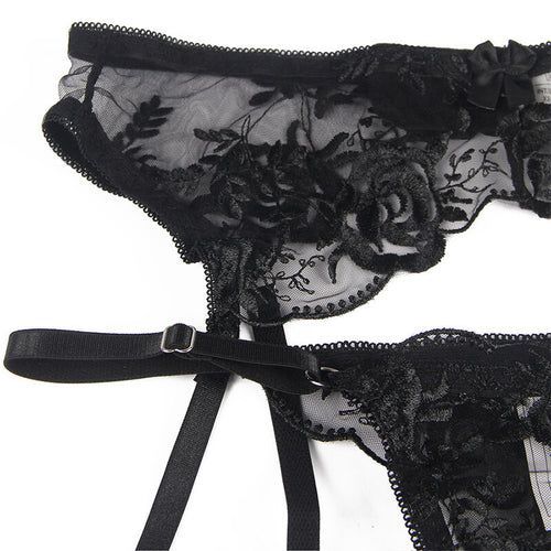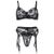 Subblime – 3-teiliges Set: BH, String & Strumpfband, Blumenprint Schwarz