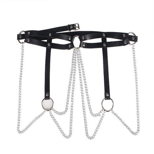 Subblime BDSM Mode Dessous Reizwäsche Lederringkettengürtel Schwarz Einheitsgrösse