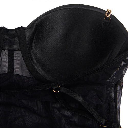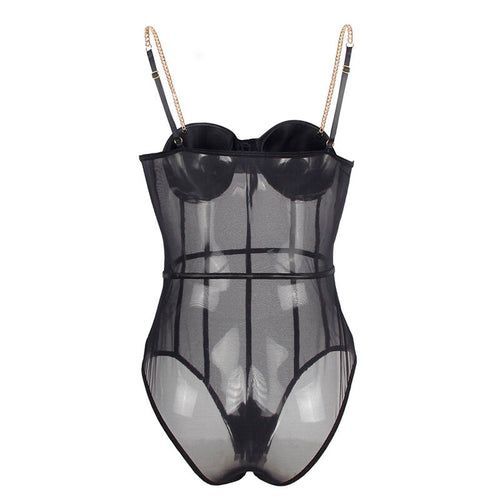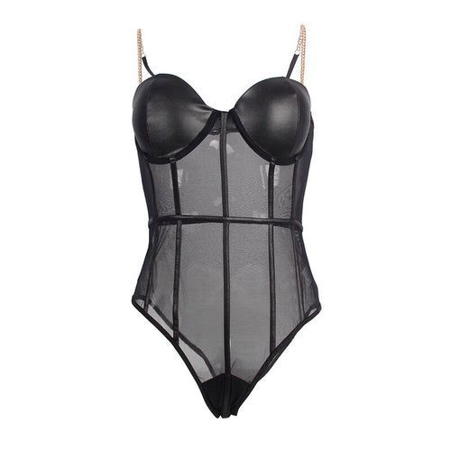Subblime – Schwarzer Body mit Ketten-Hosenträgern, S/M