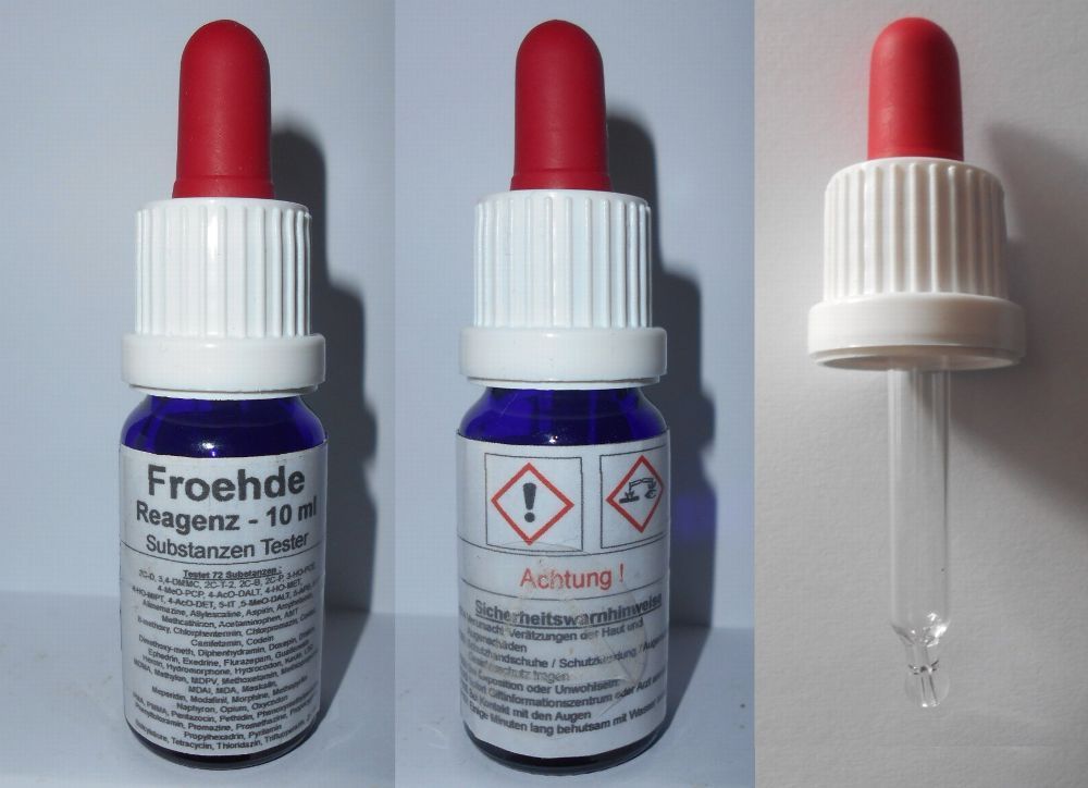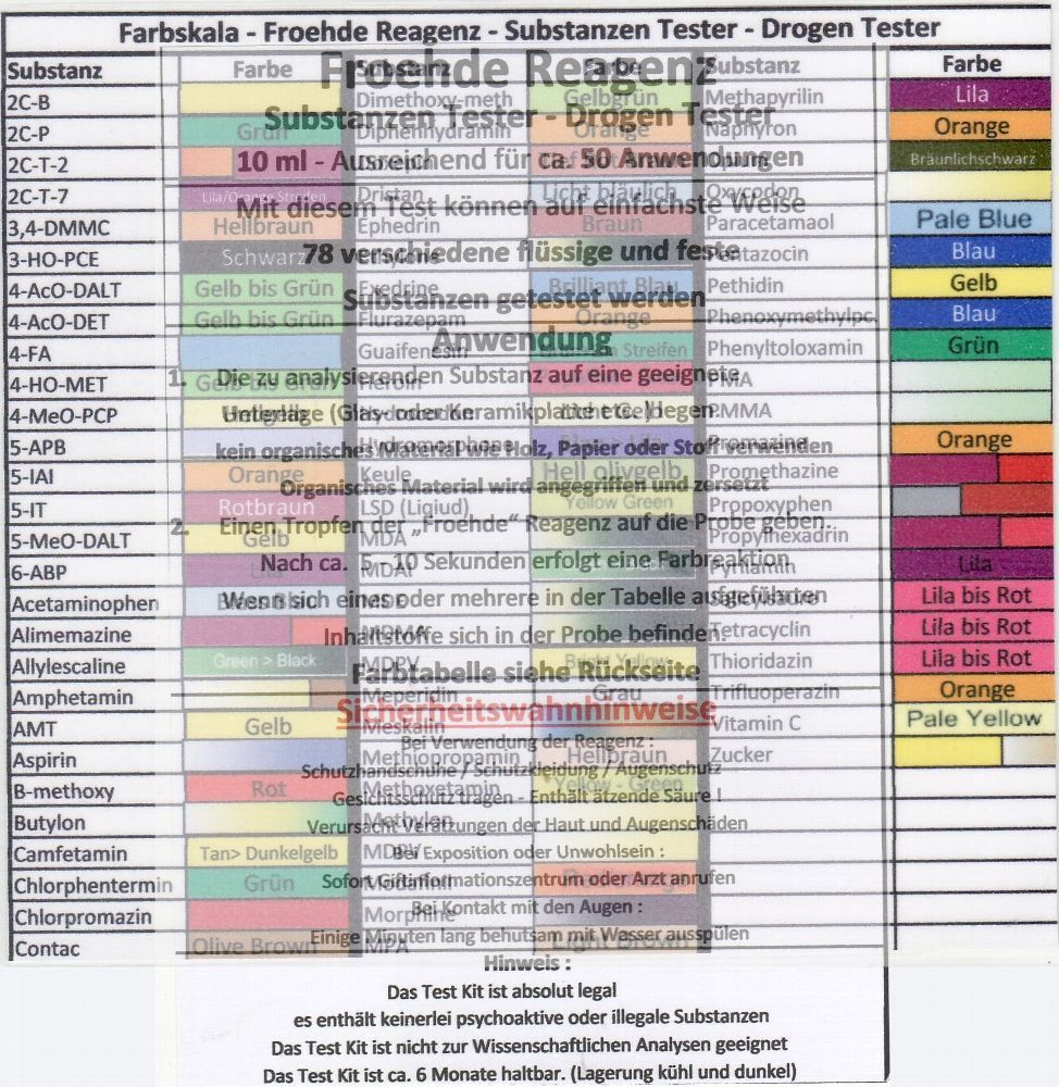 Substanzen Tester - Fröhde Reagenz 10 ml mit Farbskala - Testet 72 Substanzen