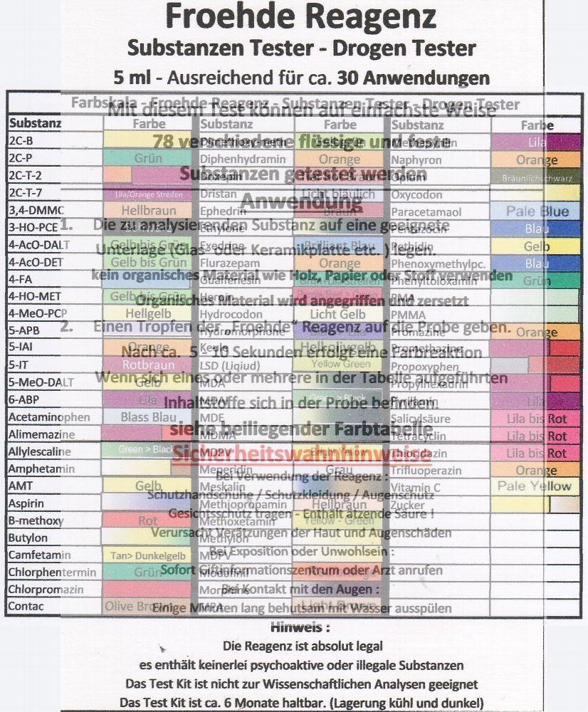 Substanzen Tester - Fröhde Reagenz 5 ml mit Farbskala - Testet 72 Substanzen