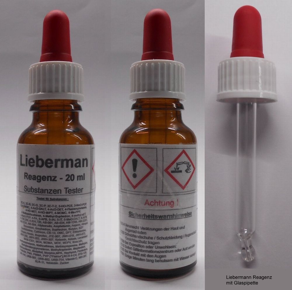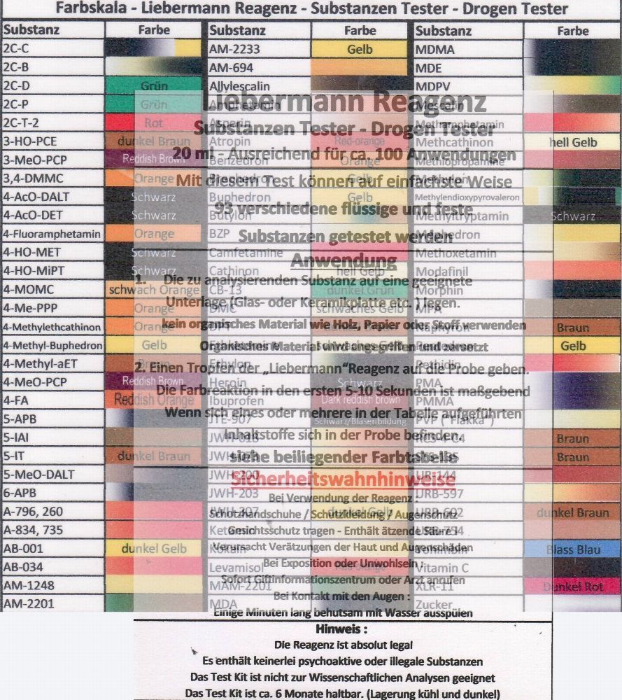 Substanzen Tester - Liebermann Reagenz 20 ml mit Farbskala - Testet 93 Substanzen