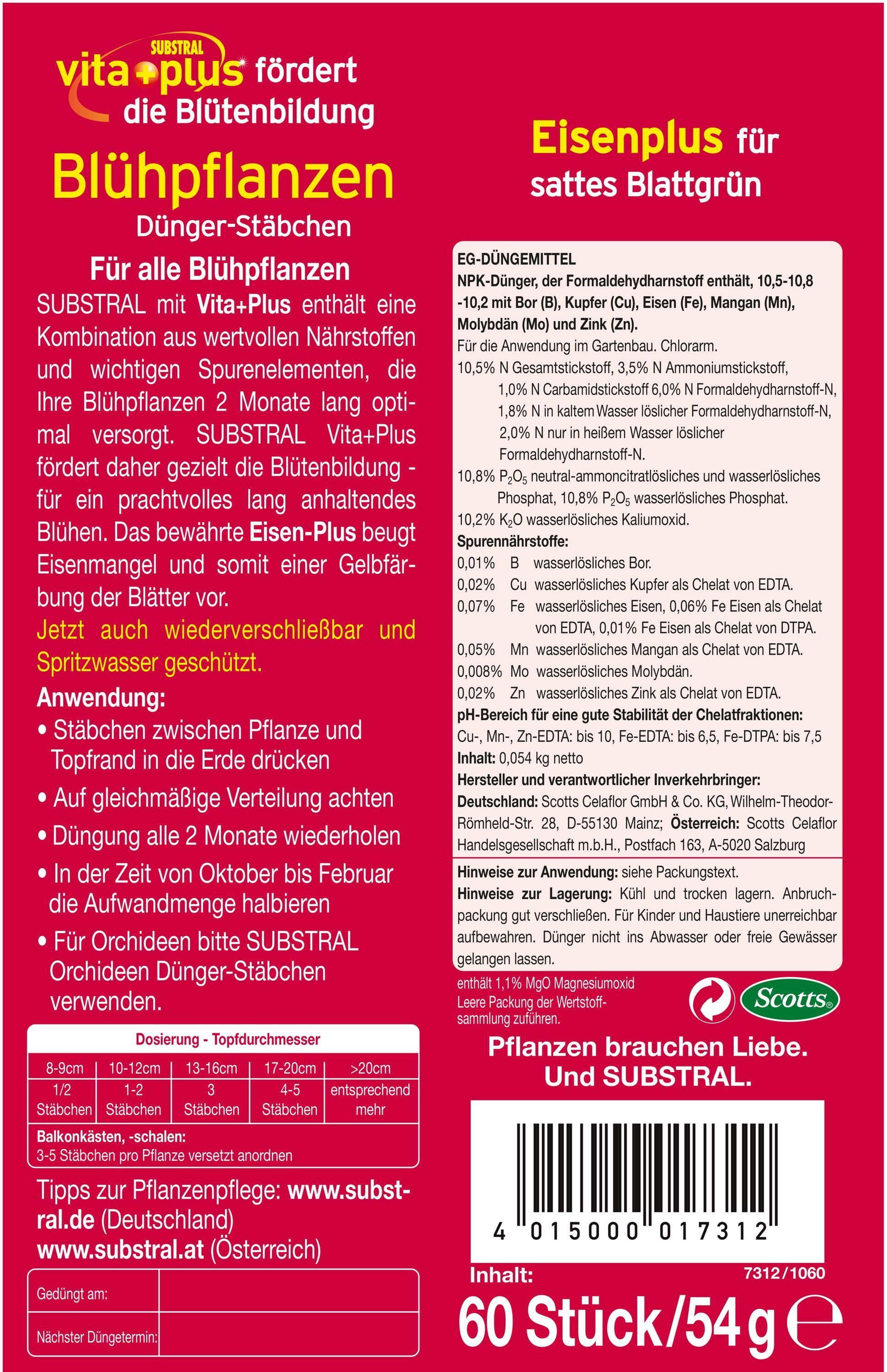 SUBSTRAL® Blühpflanzen Dünger-Stäbchen, 60 Stück