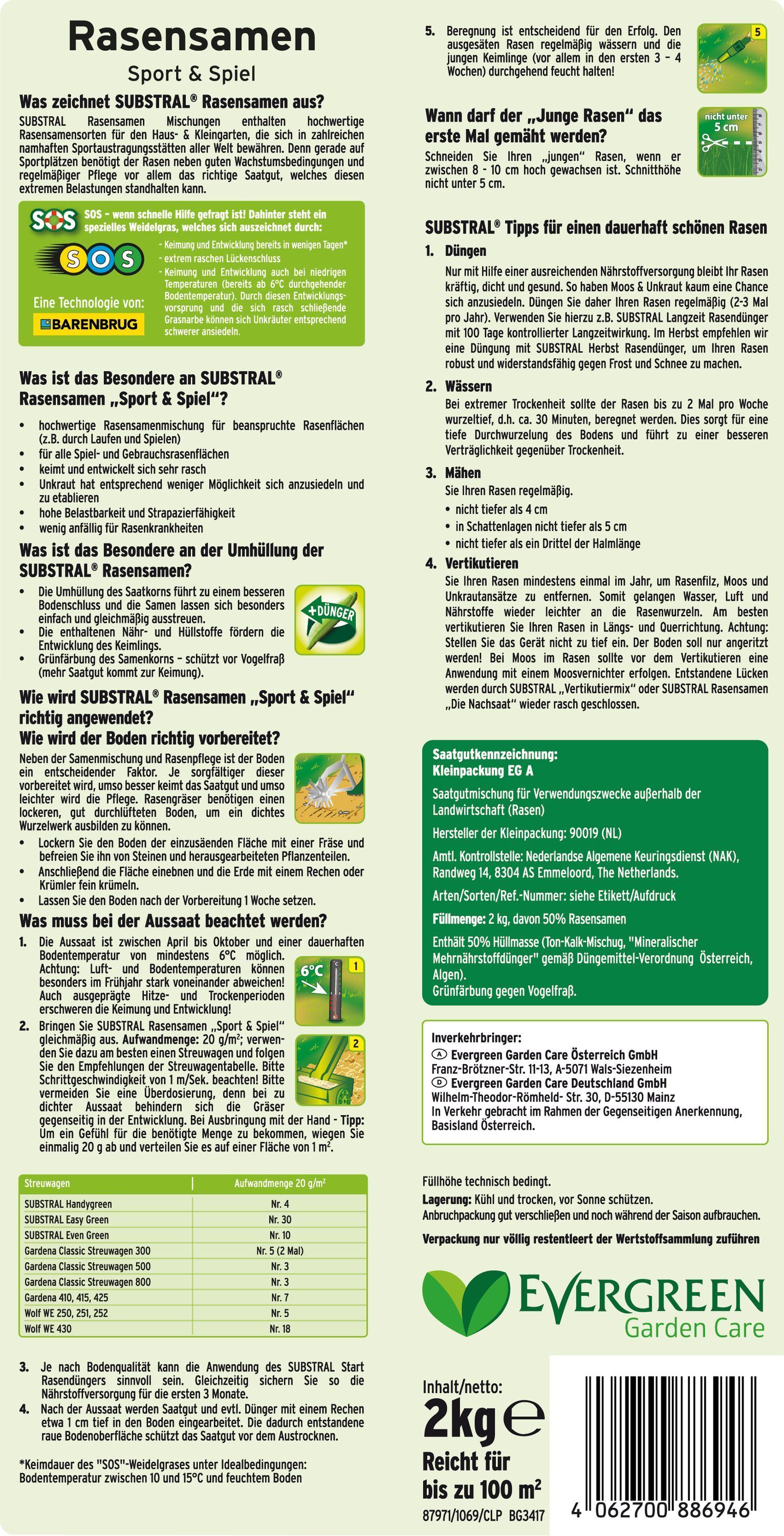 SUBSTRAL® Rasensamen Sport & Spiel, 2 kg