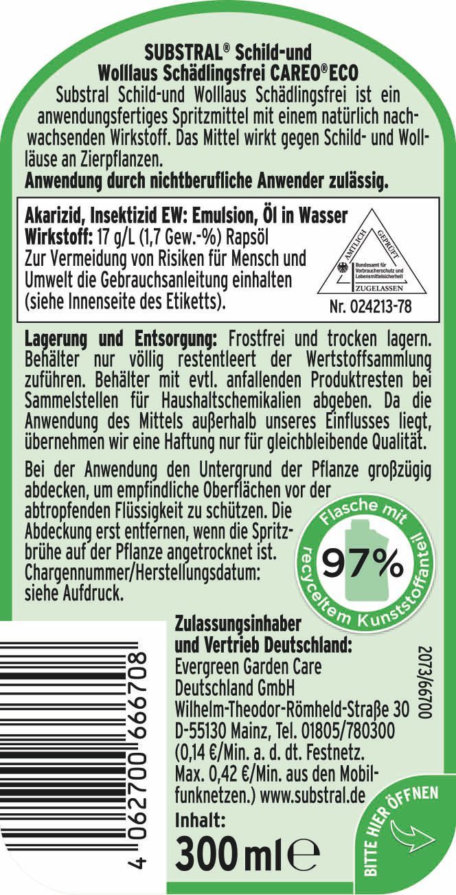 SUBSTRAL® Schild-& Wolllaus Schädlingsfrei Careo® Eco, 300 ml Sprühflasche