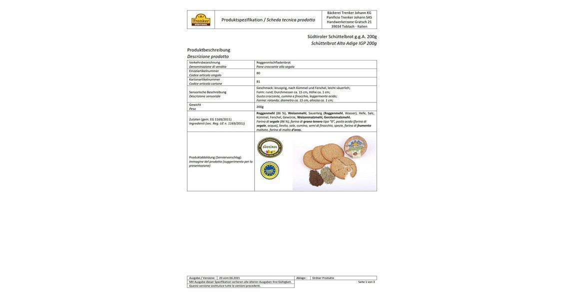 Südtiroler Schüttelbrot Roggen Original, 200g Trenker Südtirol 3 Varianten