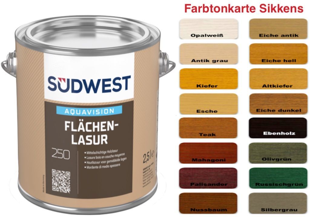 Südwest Aqua Flächenlasur - Holzlasur Fenster Türe Kinderspielzeug - Farbtöne Sikkens