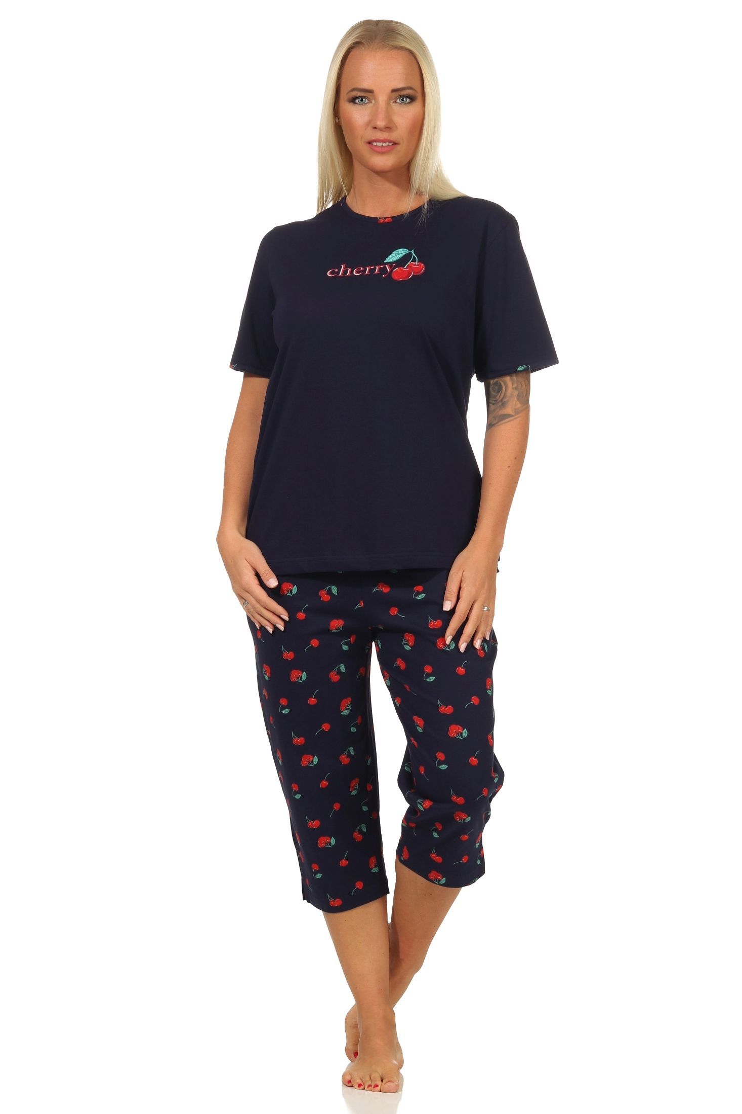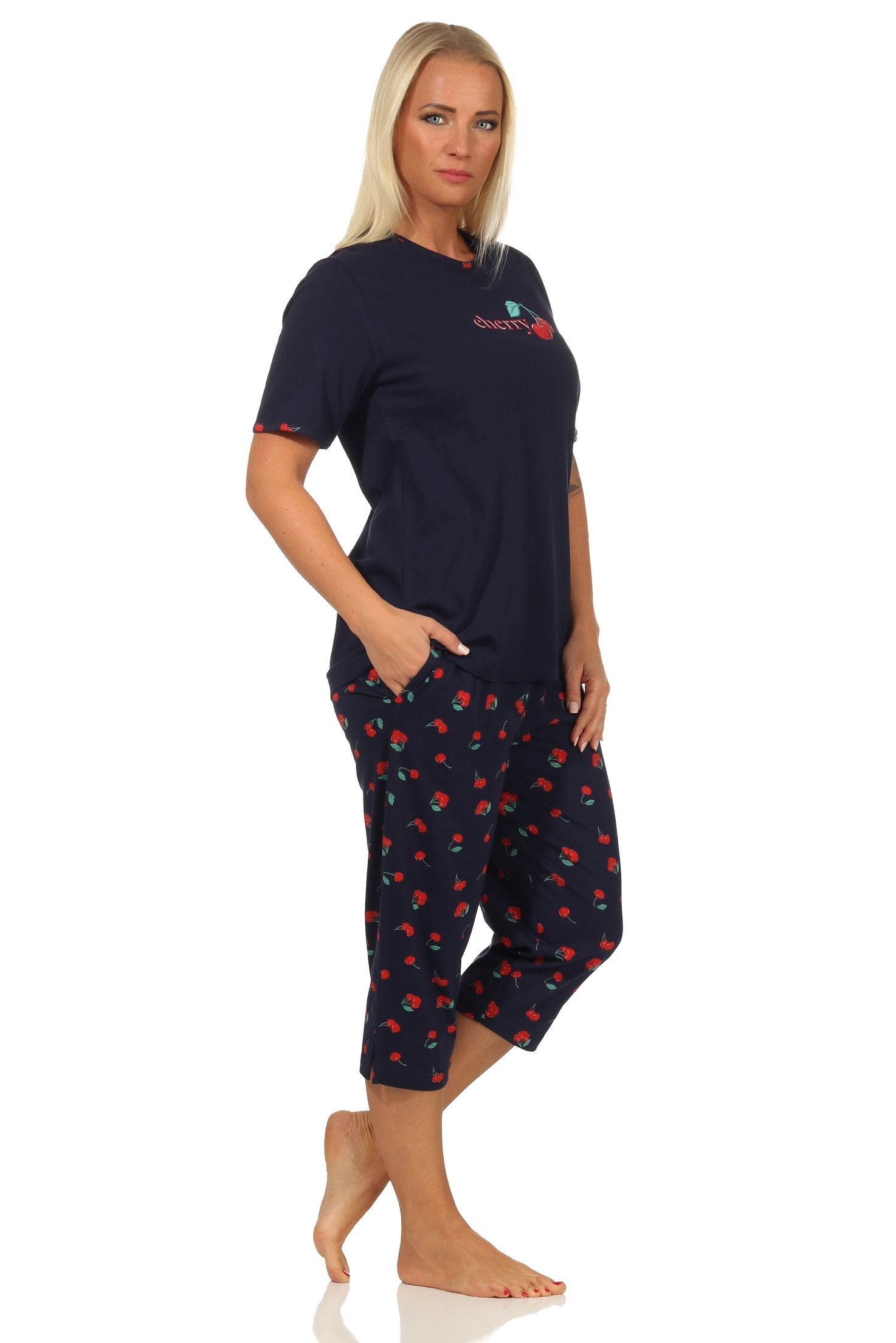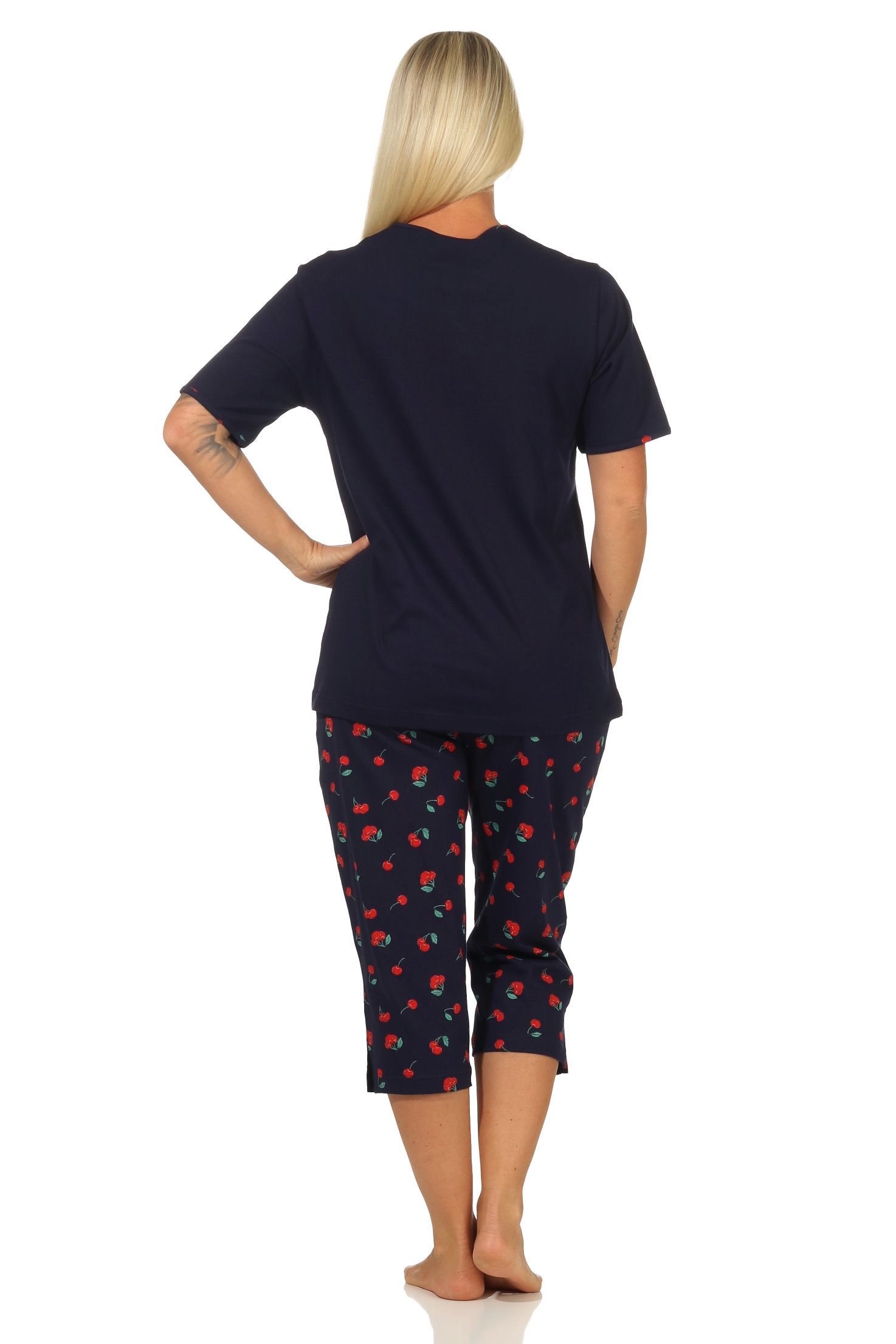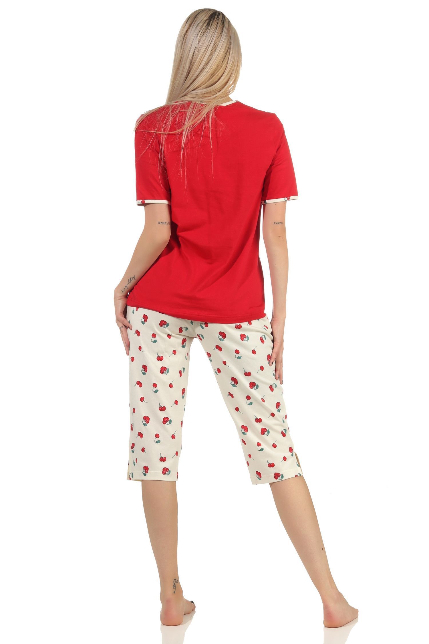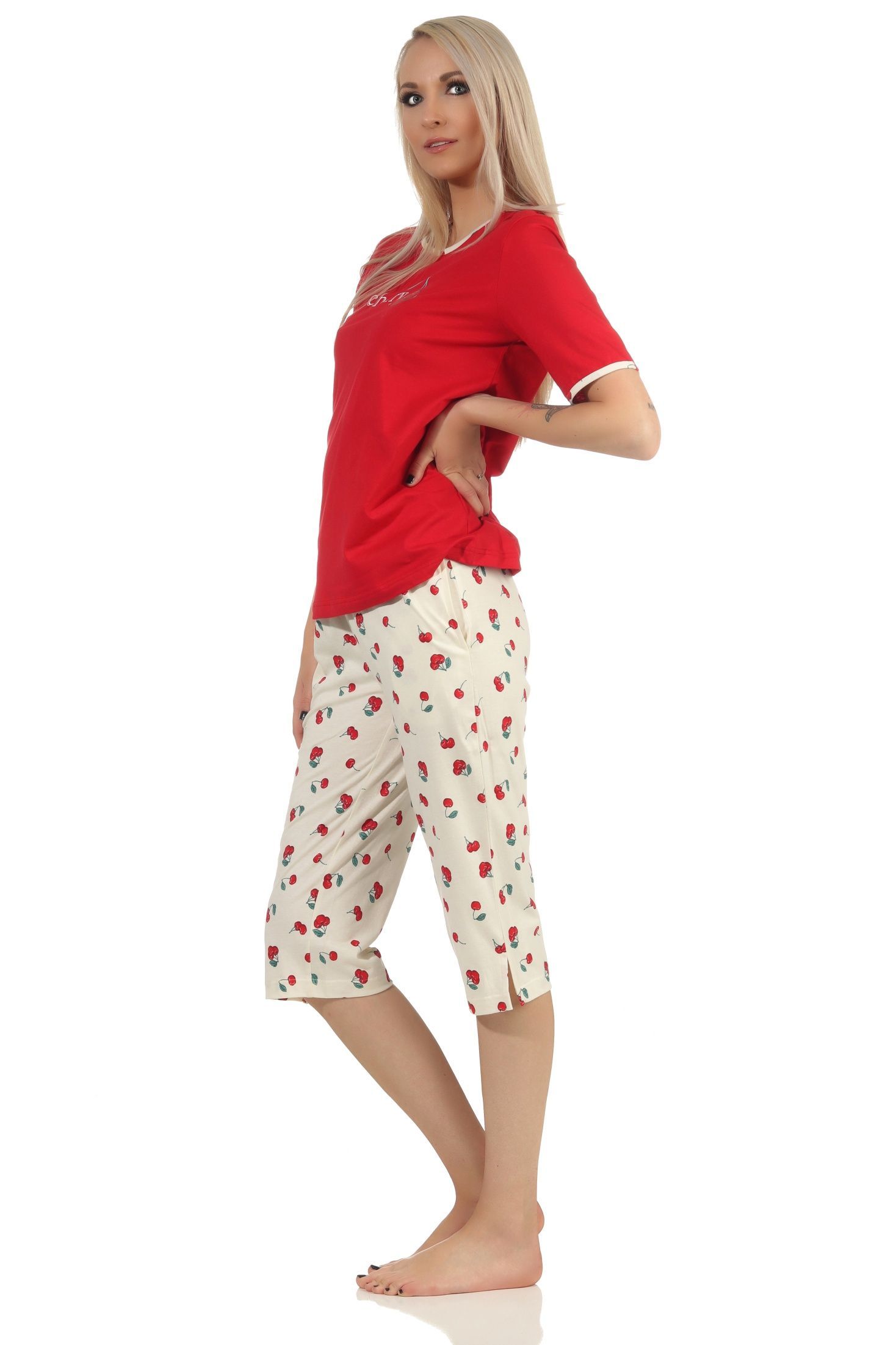 Süsser Damen Capri Schlafanzug kurzarm Pyjama mit Kirschen als Motiv – 112 204 90 535