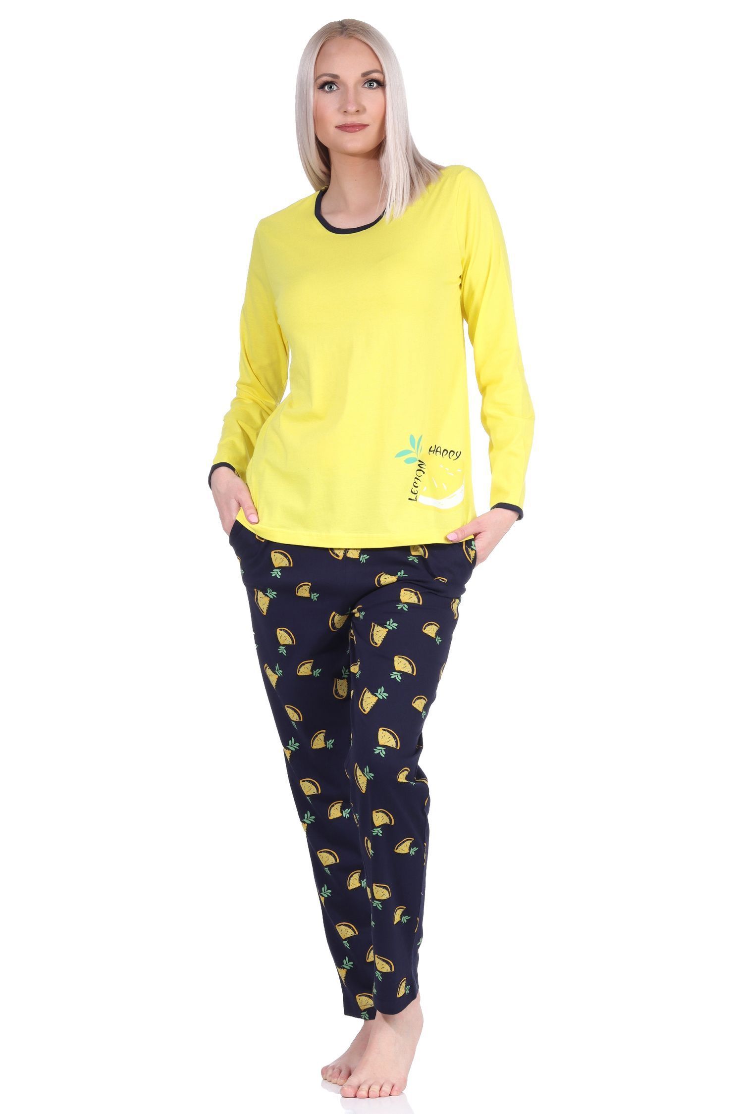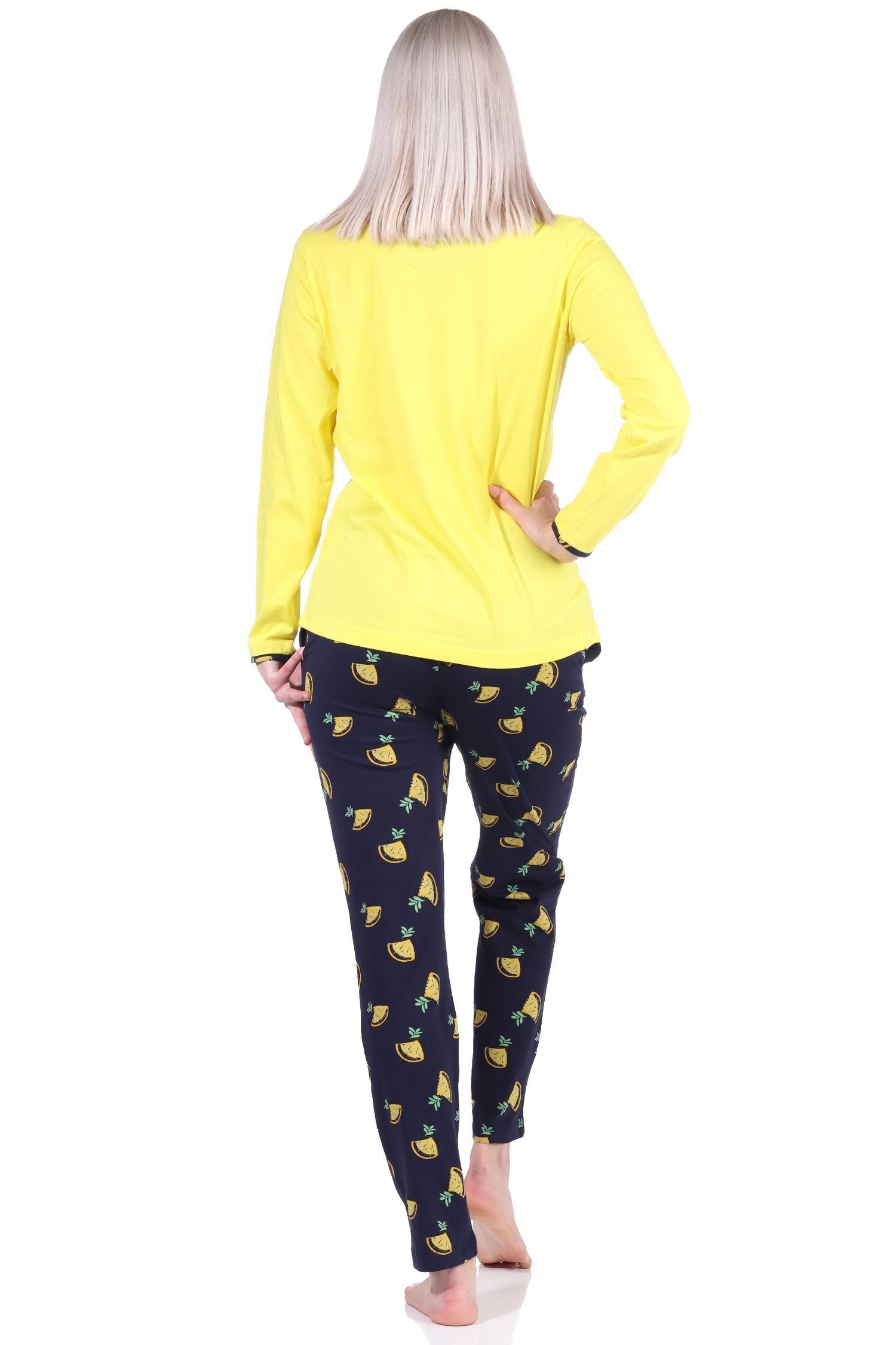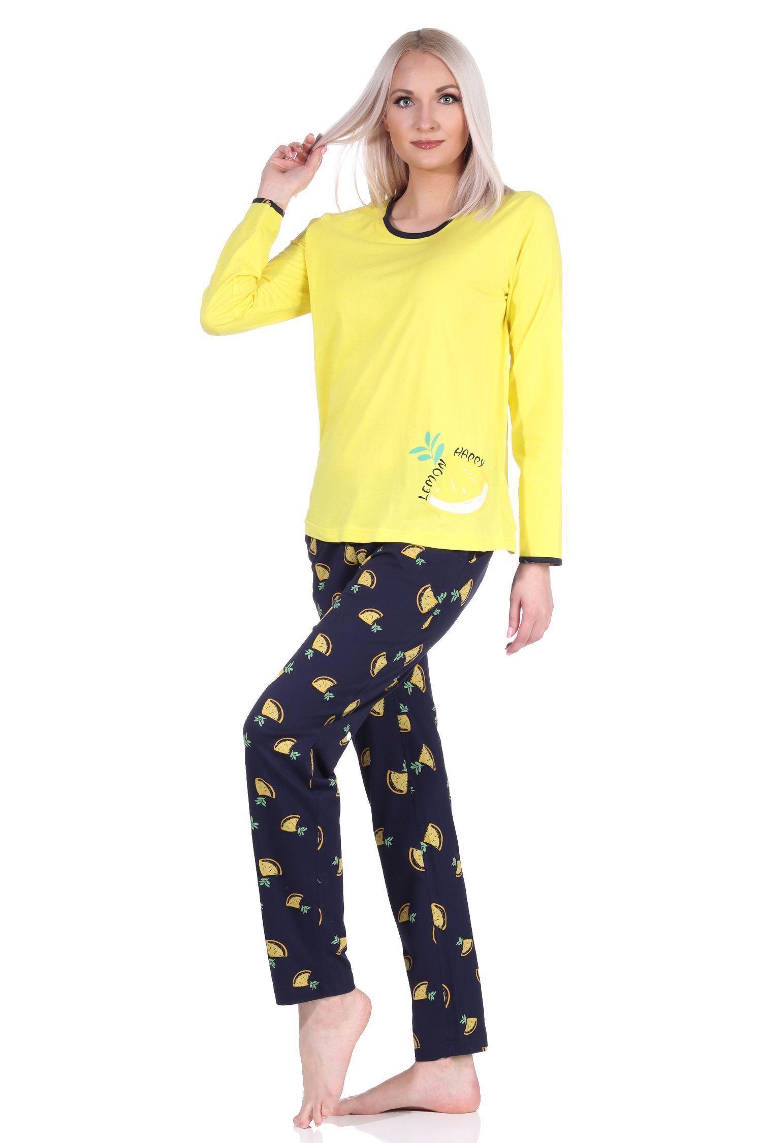 Süsser Damen Schlafanzug langarm Pyjama mit Zitronen als Motiv - 112 201 90 535
