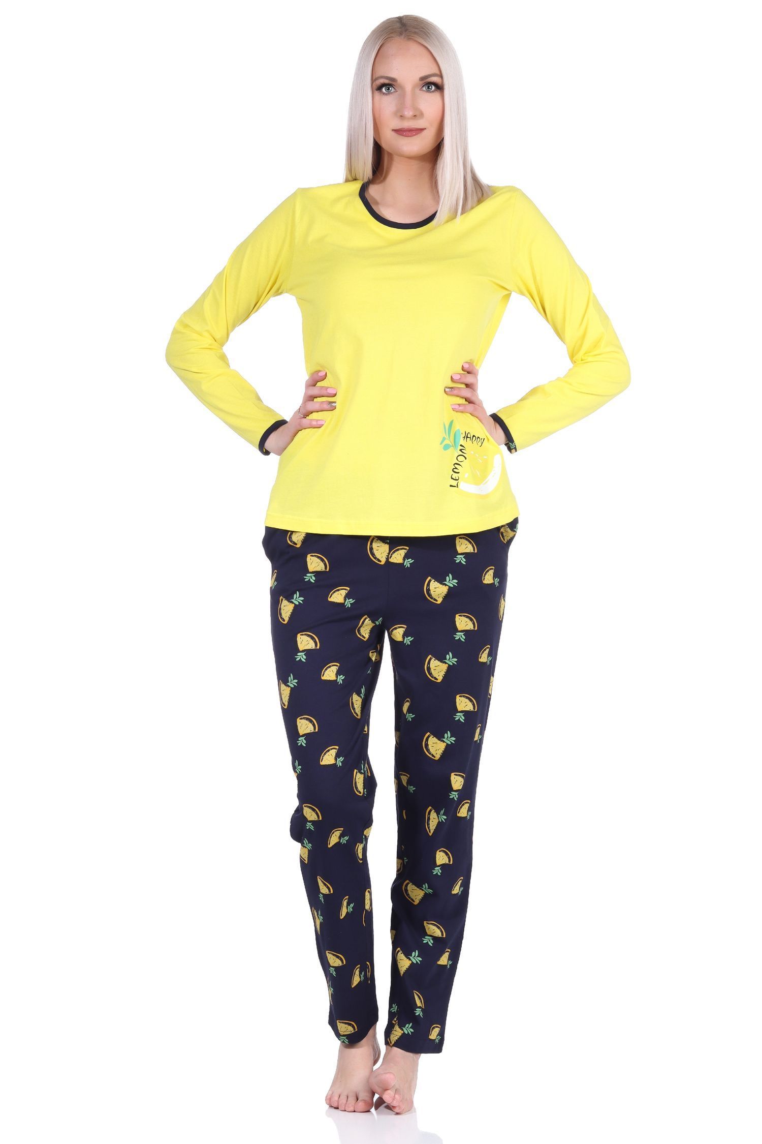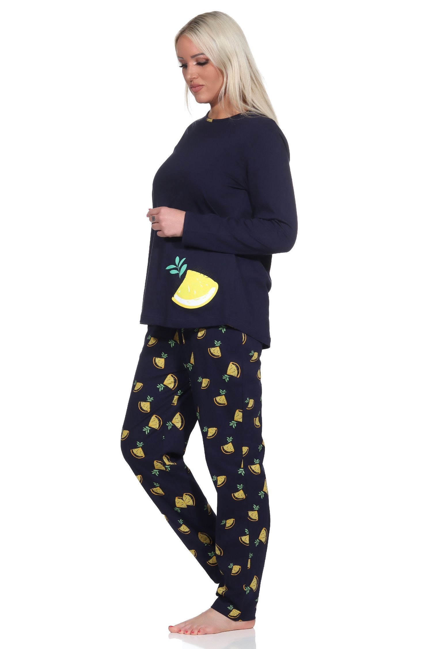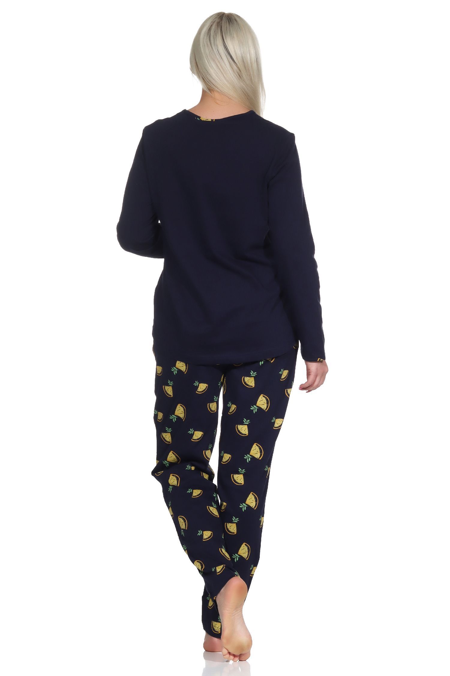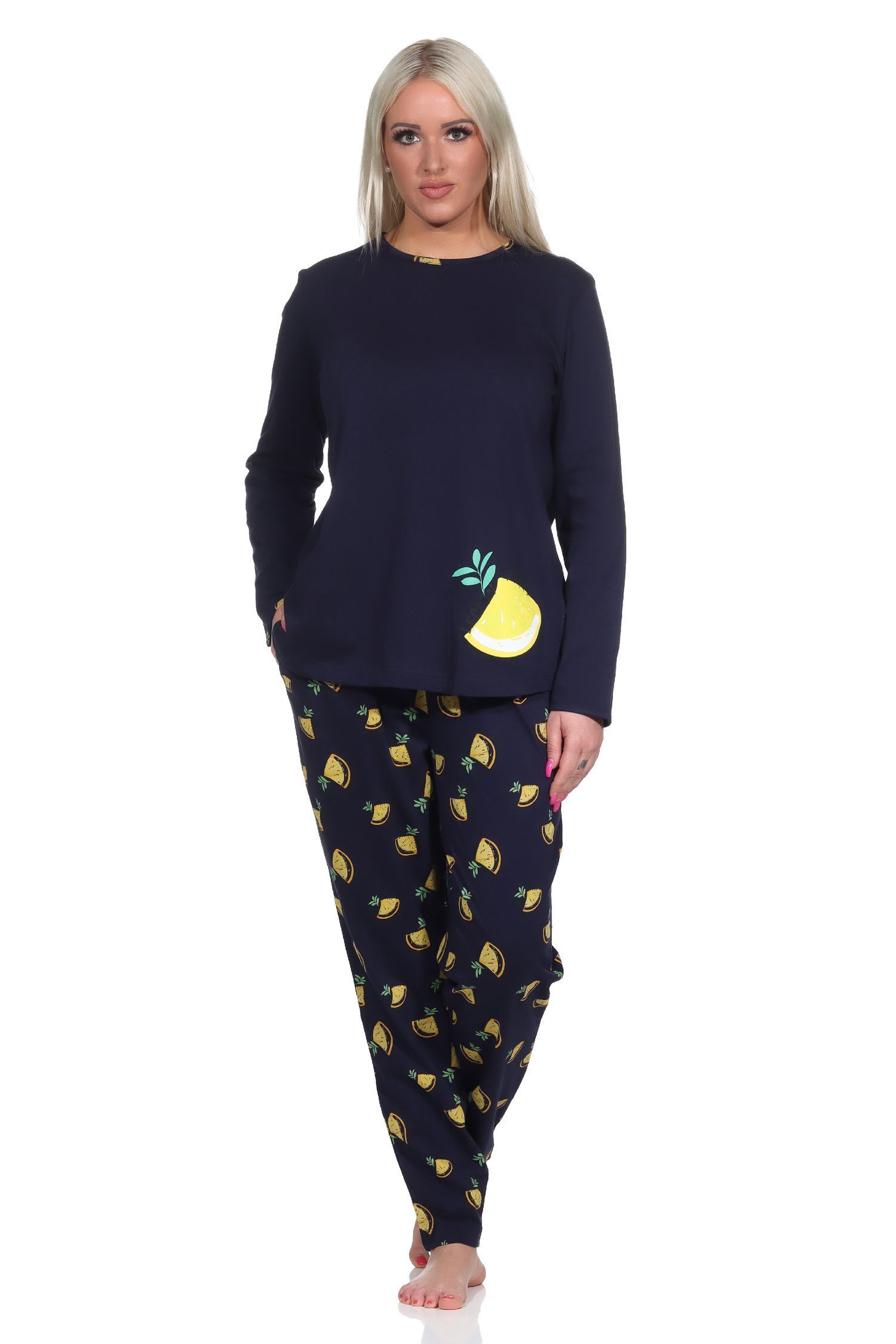 Süsser Damen Schlafanzug langarm Pyjama mit Zitronen als Motiv - 112 201 90 535