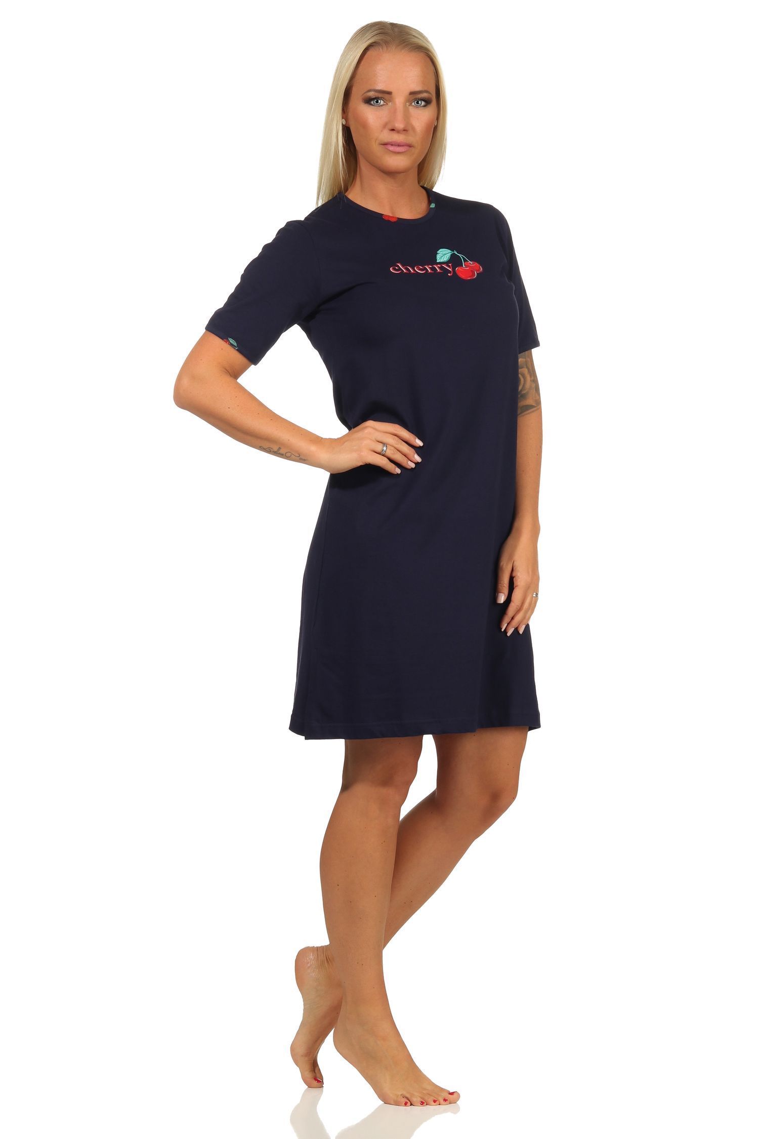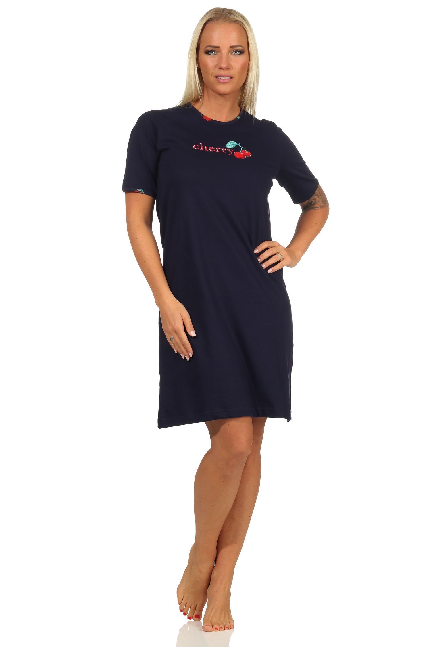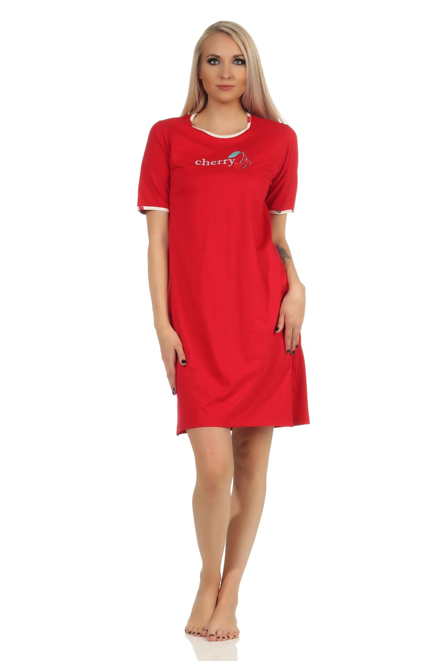 Süsses kurzarm Damen Nachthemd mit Kirschen als Motiv – 112 214 90 535