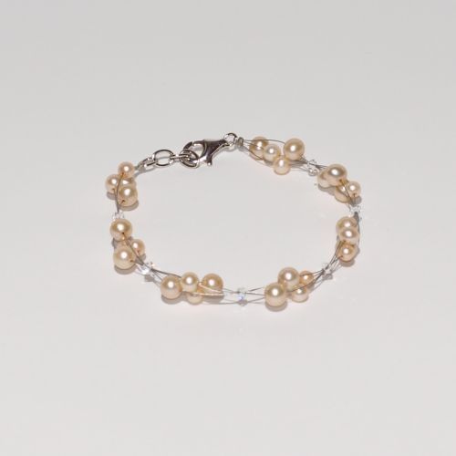 schönes Perlenarmband mit Kristallglas-Elementen Süßwasserperlen champagner Das Collier kann vielseitig kombiniert werden.