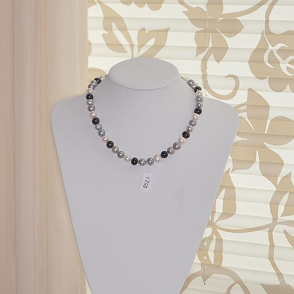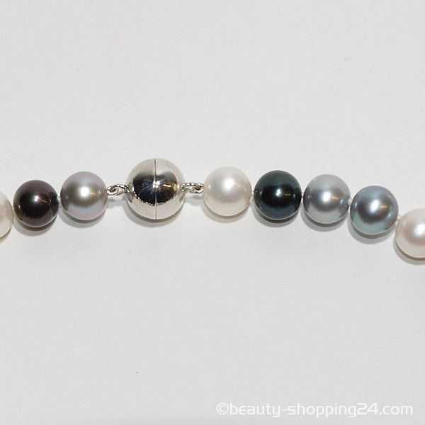 elegante mehrfarbige Halskette Süsswasser Zuchtperlen in den Farben weiss dunkelgrau hellgrau schwarz die Perlen haben einen wunderschönen Glanz und wirken äußerst hochwertig