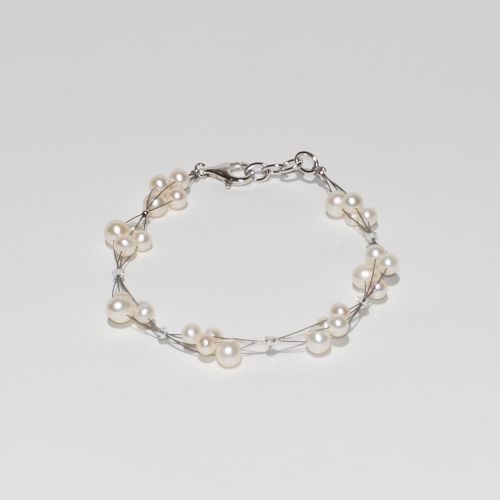 schönes Perlenarmband mit Kristallglas-Elementen weiße Süßwasserperlen Das Collier kann vielseitig kombiniert werden.