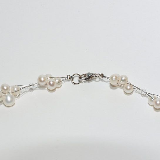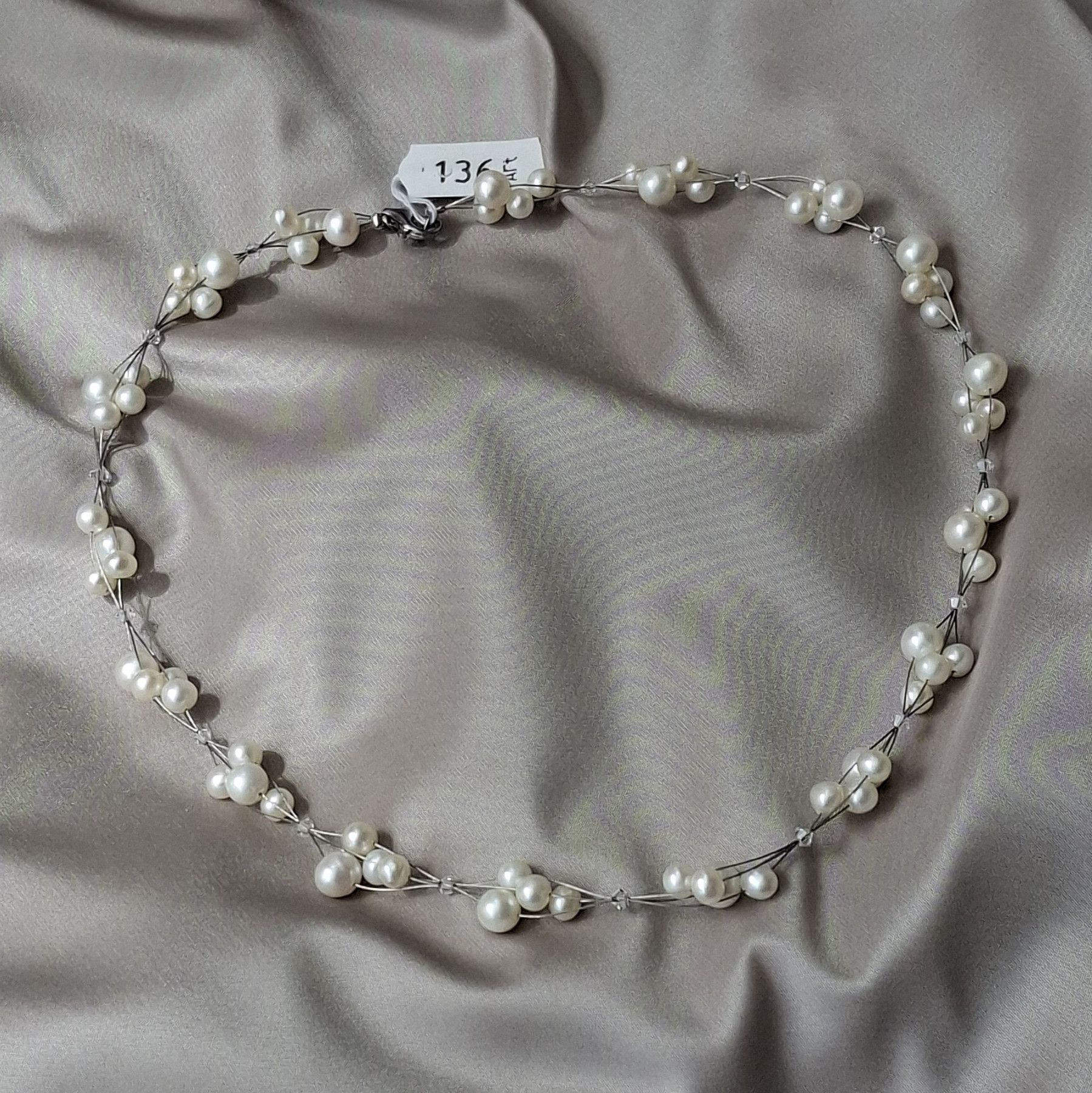 schöne Perlenkette mit Kristallglas-Elementen weiße Süßwasserperlen Das Collier kann vielseitig kombiniert werden.