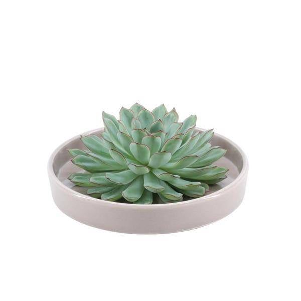 â?? Lieferumfang: 1Ã? Echeveria Rosette (Ã?12â??14cm) + 1Ã? Keramikschale Ã?20cm in Taupe
