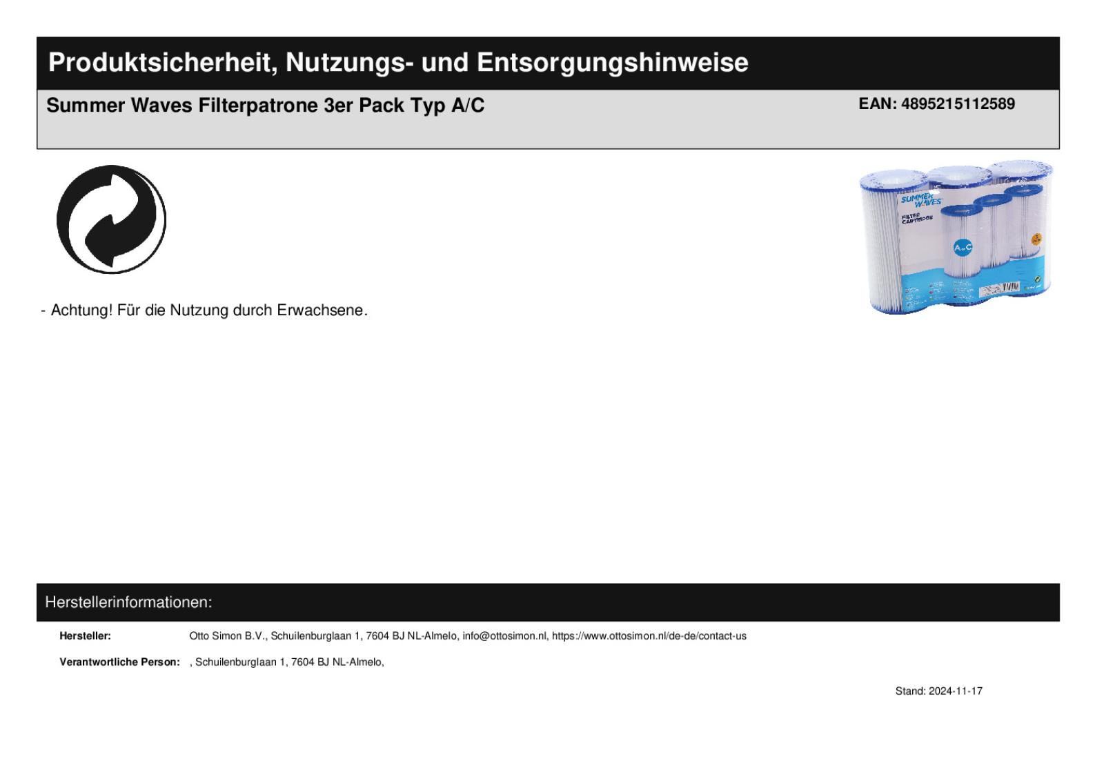 Summer Waves Pool Ersatzfilter 3er Set Filterpatrone Typ A/C Filterkartusche