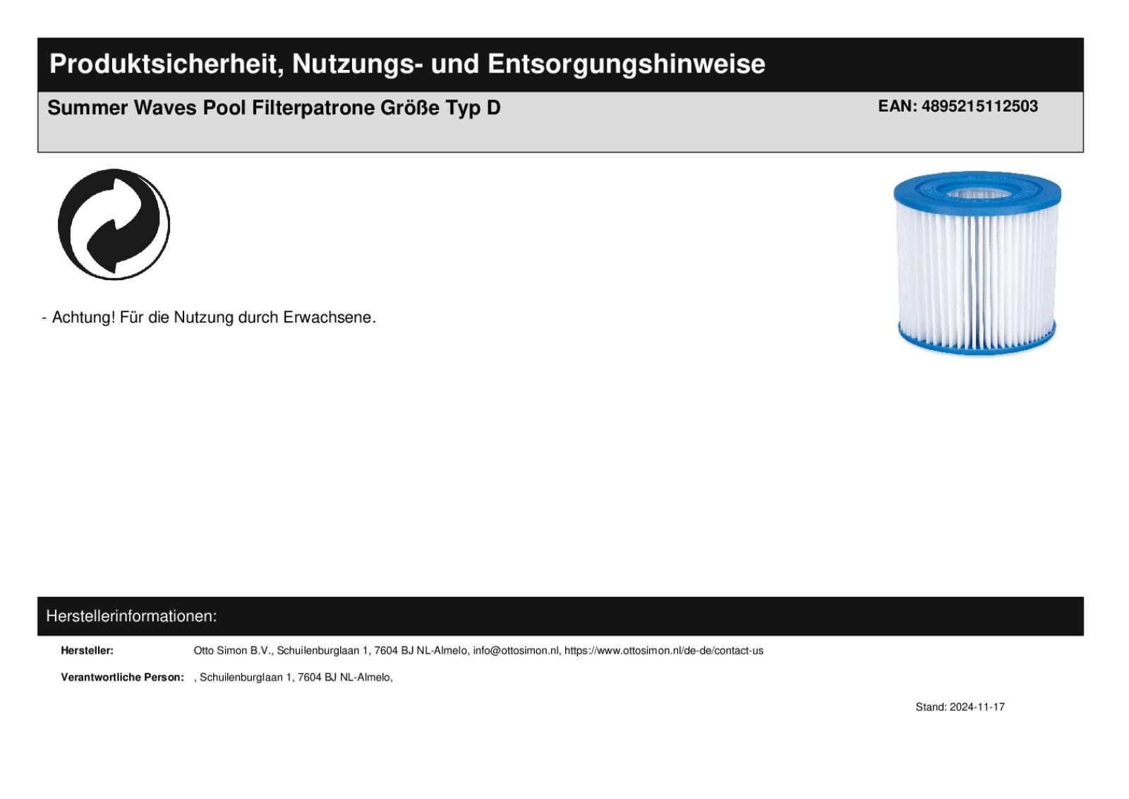 • Summer Waves Pool Ersatzfilter 4er Set Filterpatrone Typ D Filterkartusche