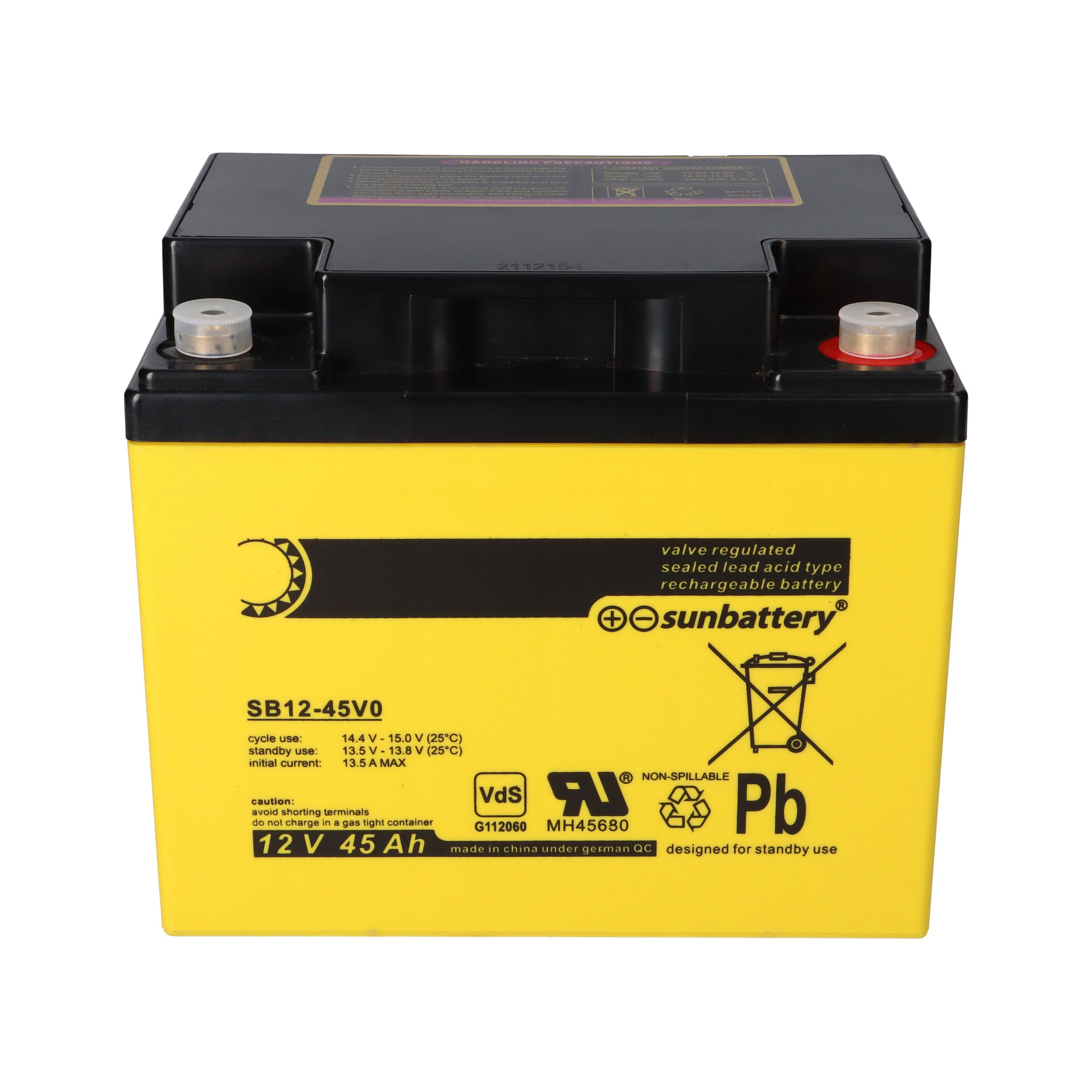 SUN Battery SB12-45V0 AGM Akku 12V 45Ah Blei-Akku mit VDS