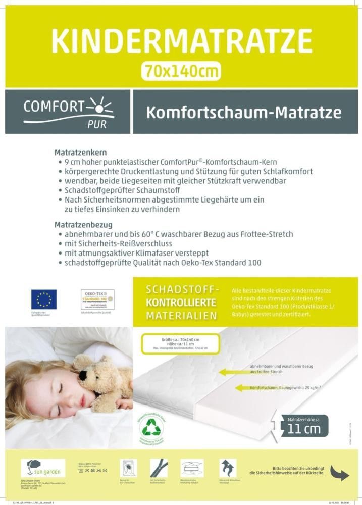Sun Garden Sun Garden Kindermatratze 70x140 cm mit waschbaren Bezug