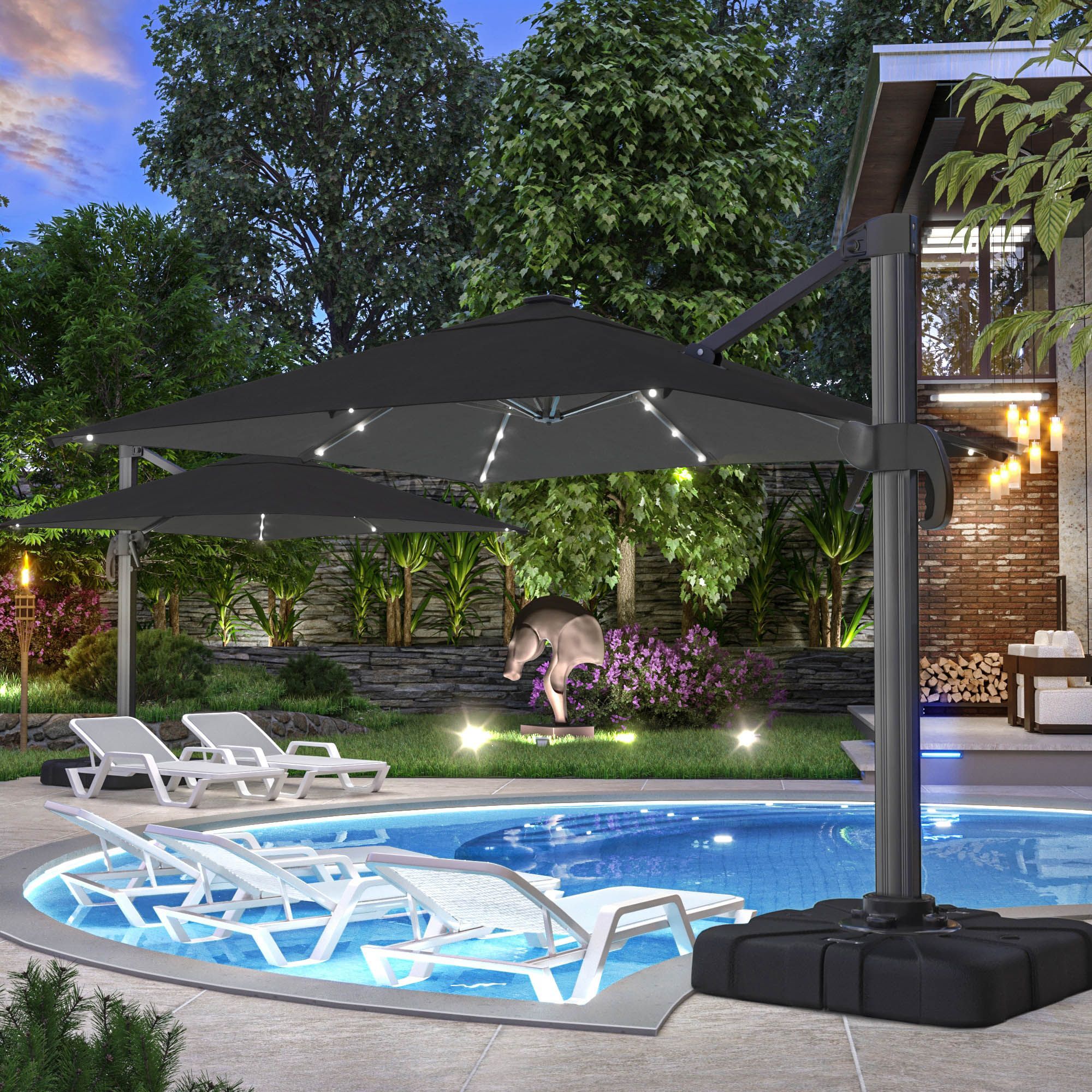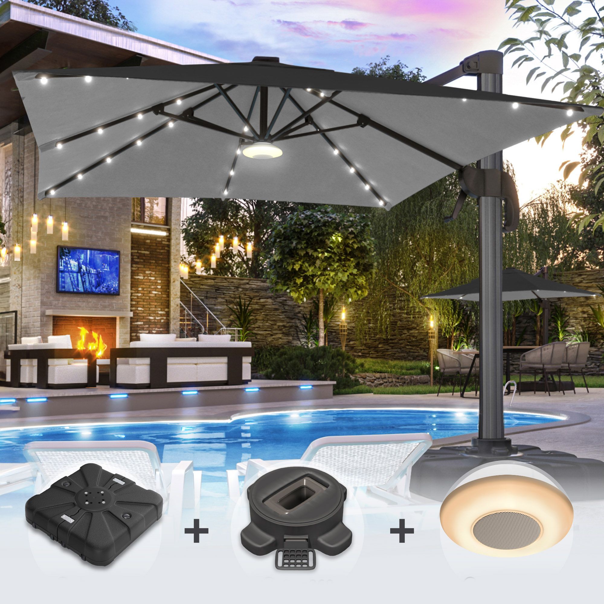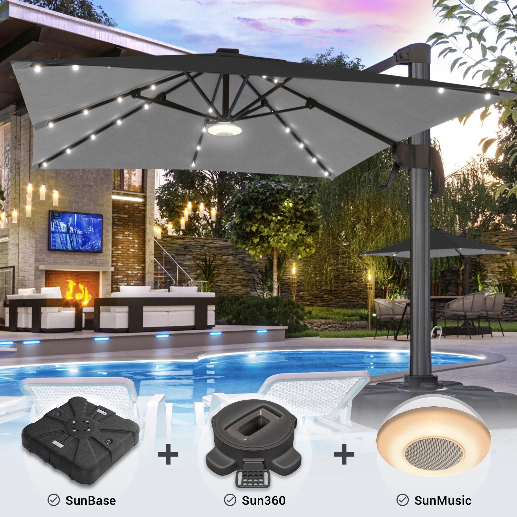 SUN LUIS | Sonnenschirm | Quadratisch | B: 300 x 300 cm | Schwarz | LED | + Ständer,