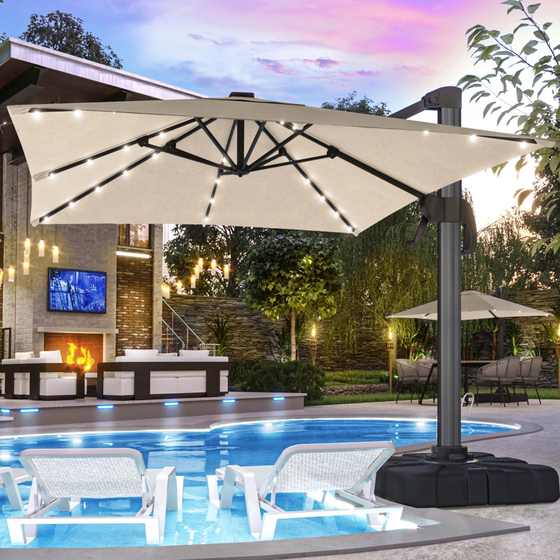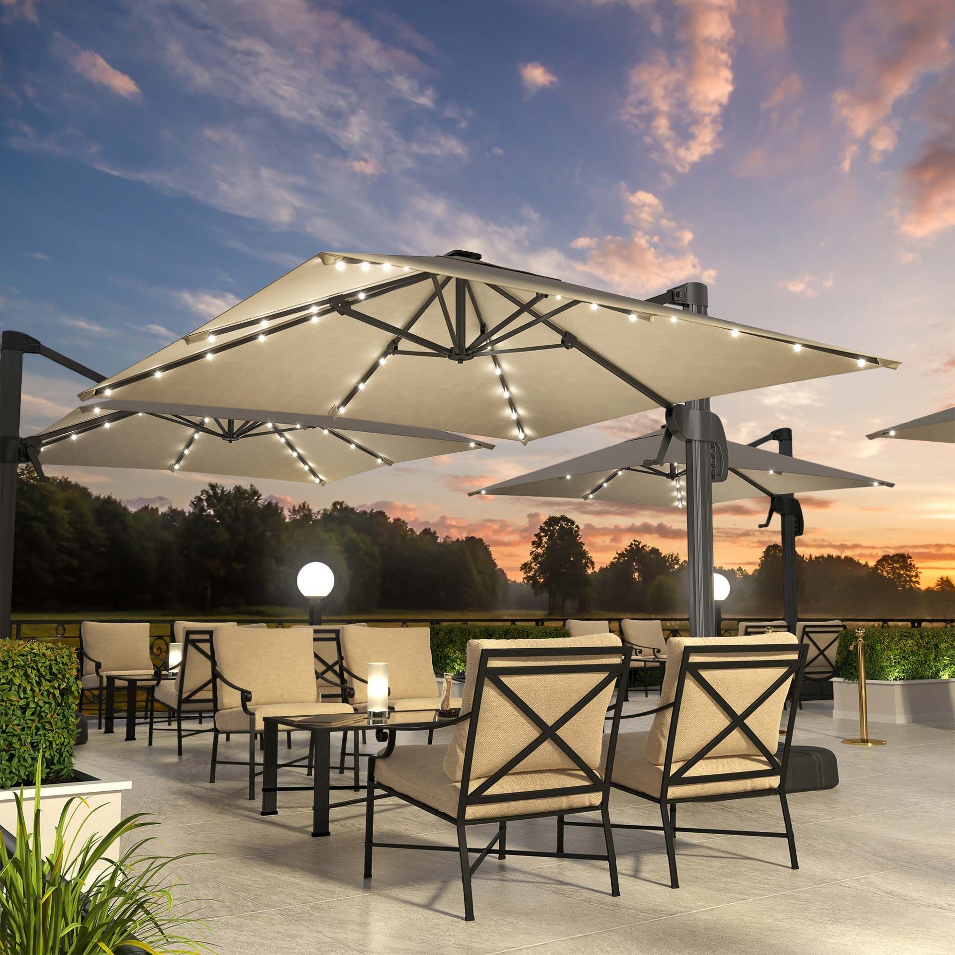 SUN LUIS | Sonnenschirm | Quadratisch | B: 300 x 300 cm | Taupe | LED | Ampelschirm