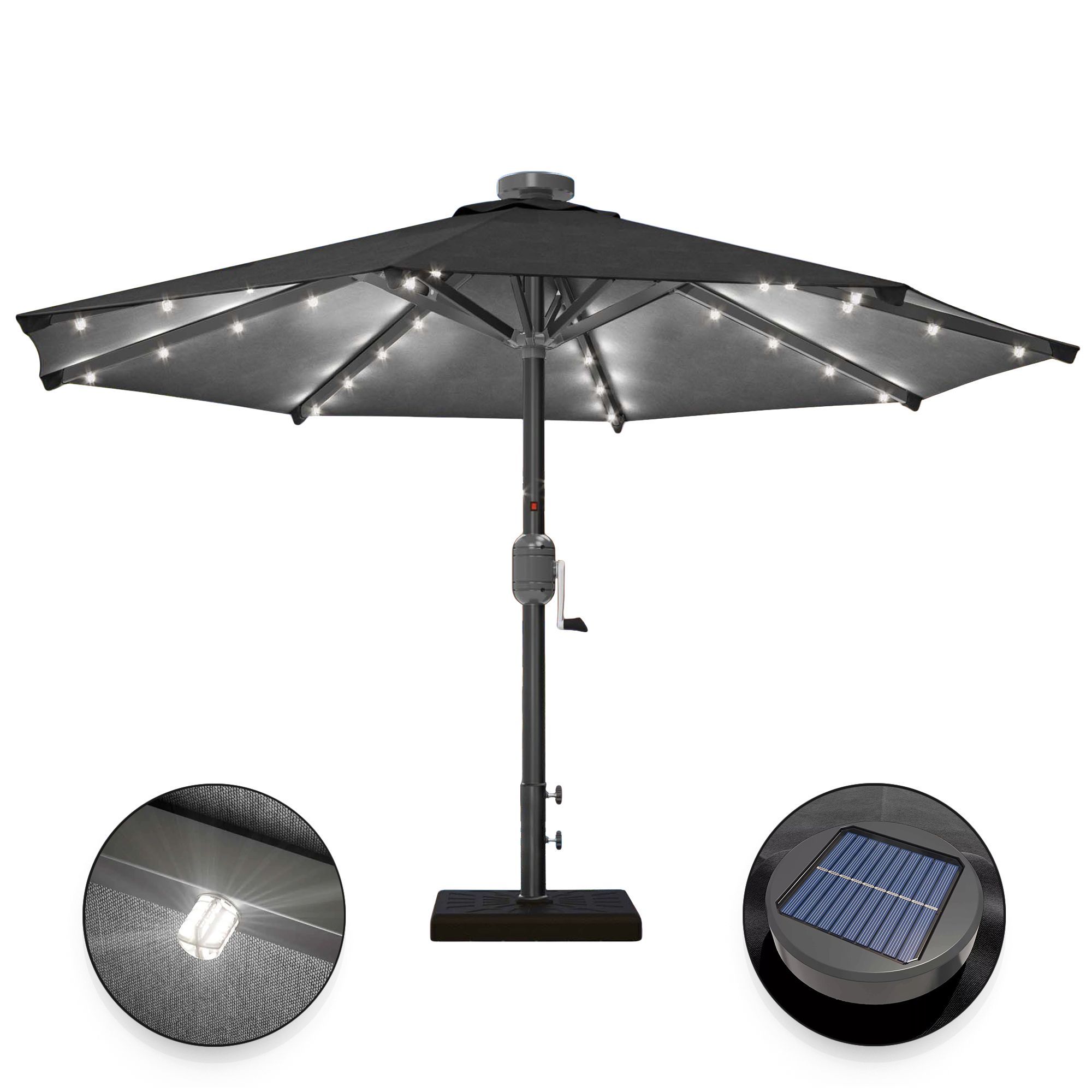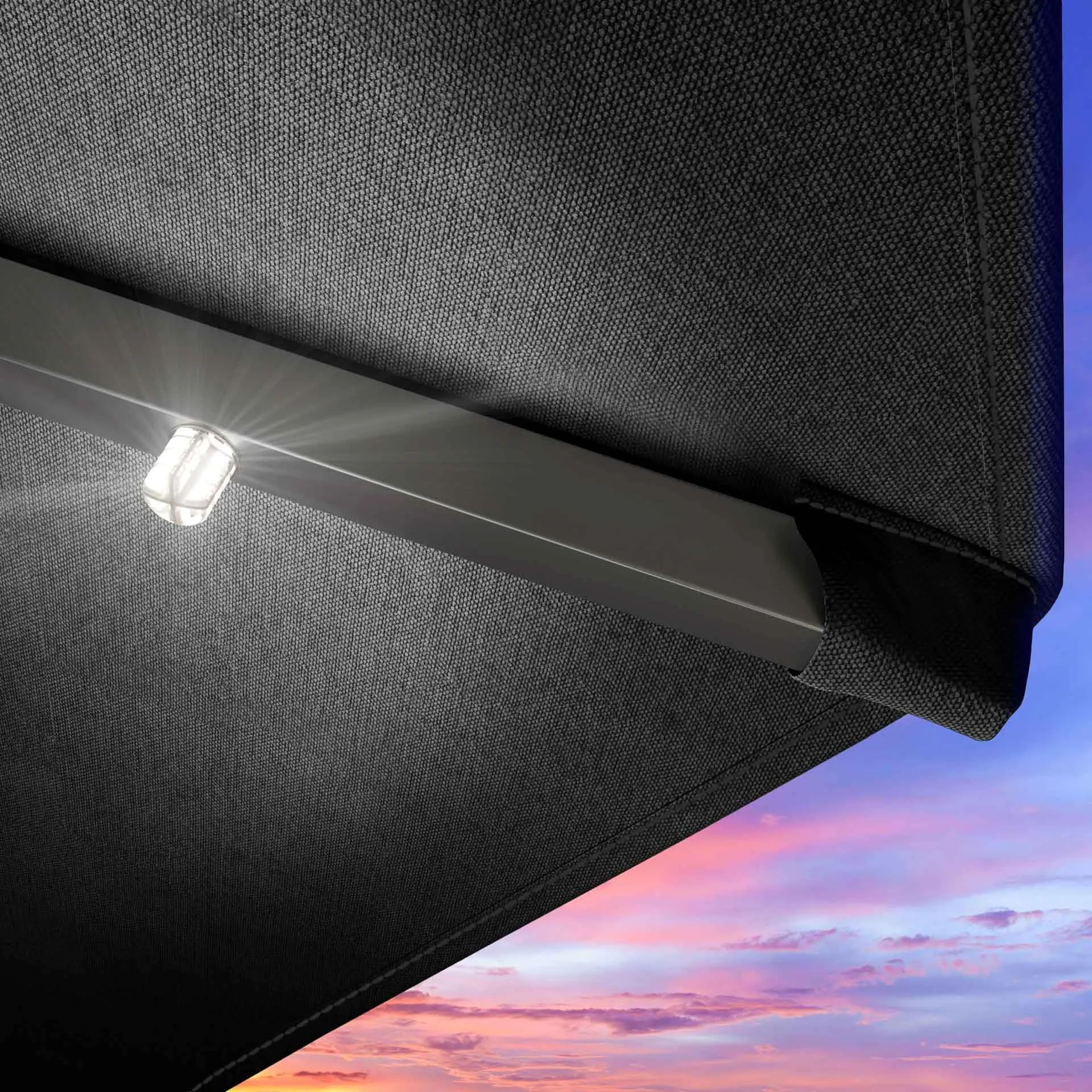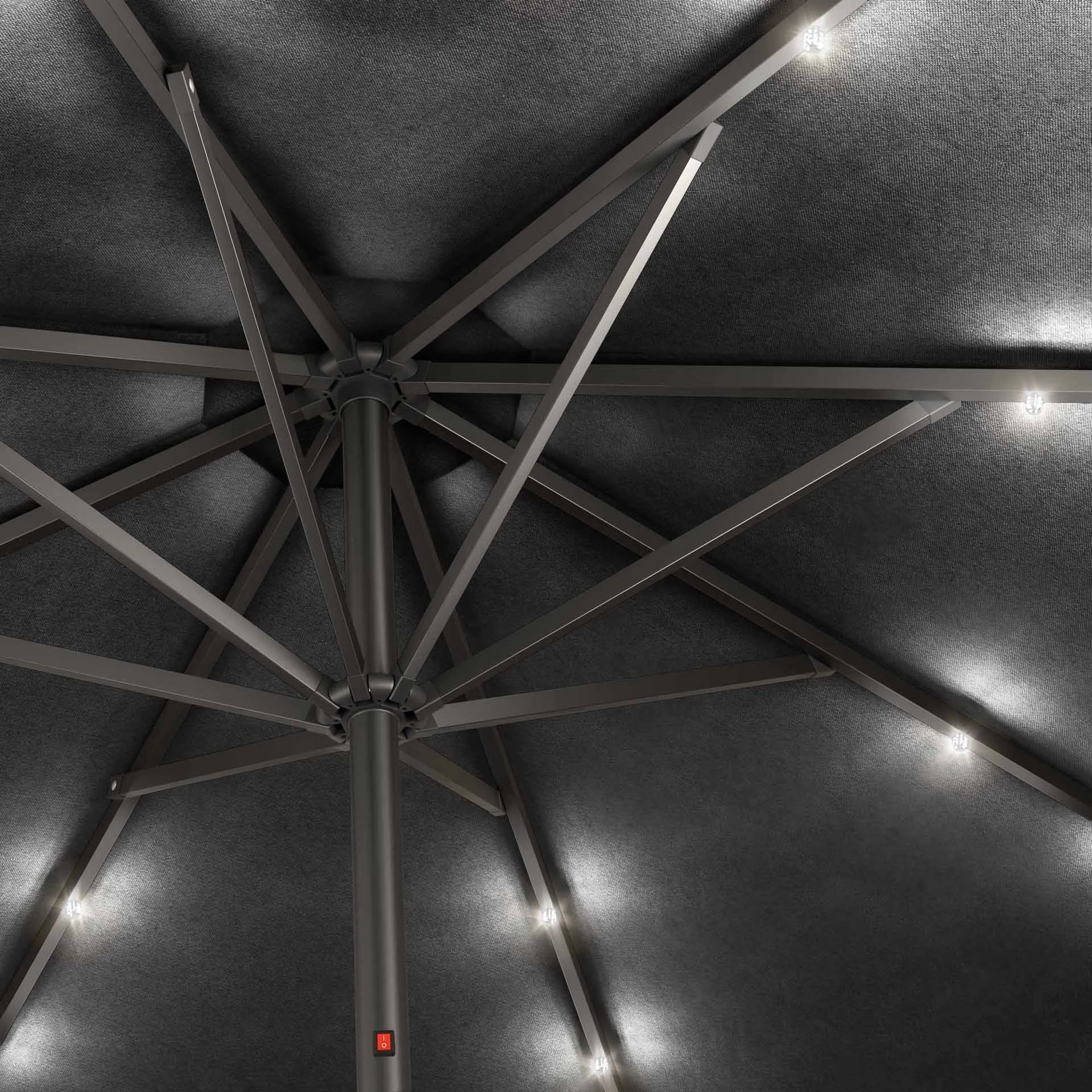 SUN MARINO | Sonnenschirm | Rund | Ø 300 cm | Schwarz | LED | Ampelschirm, Marktschi