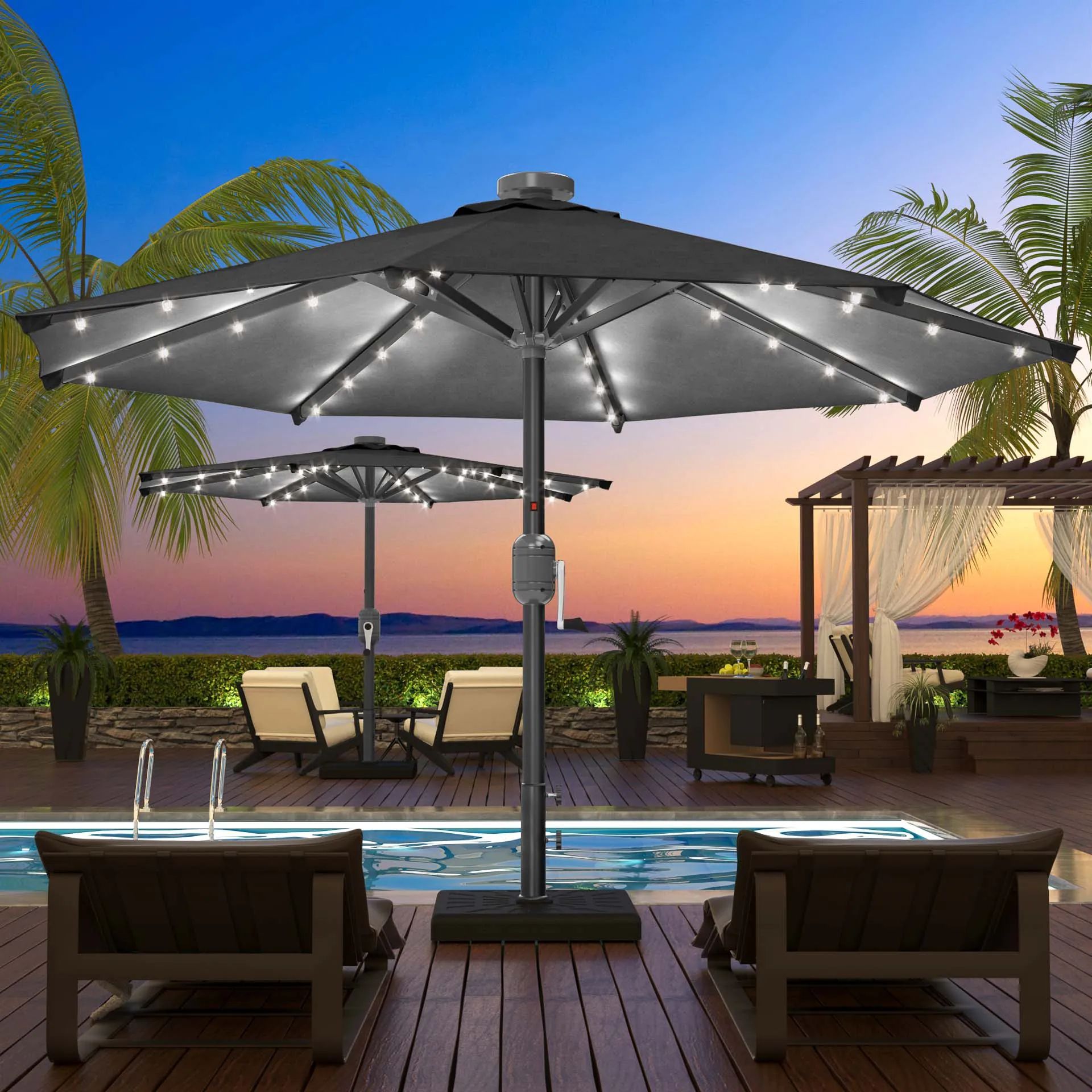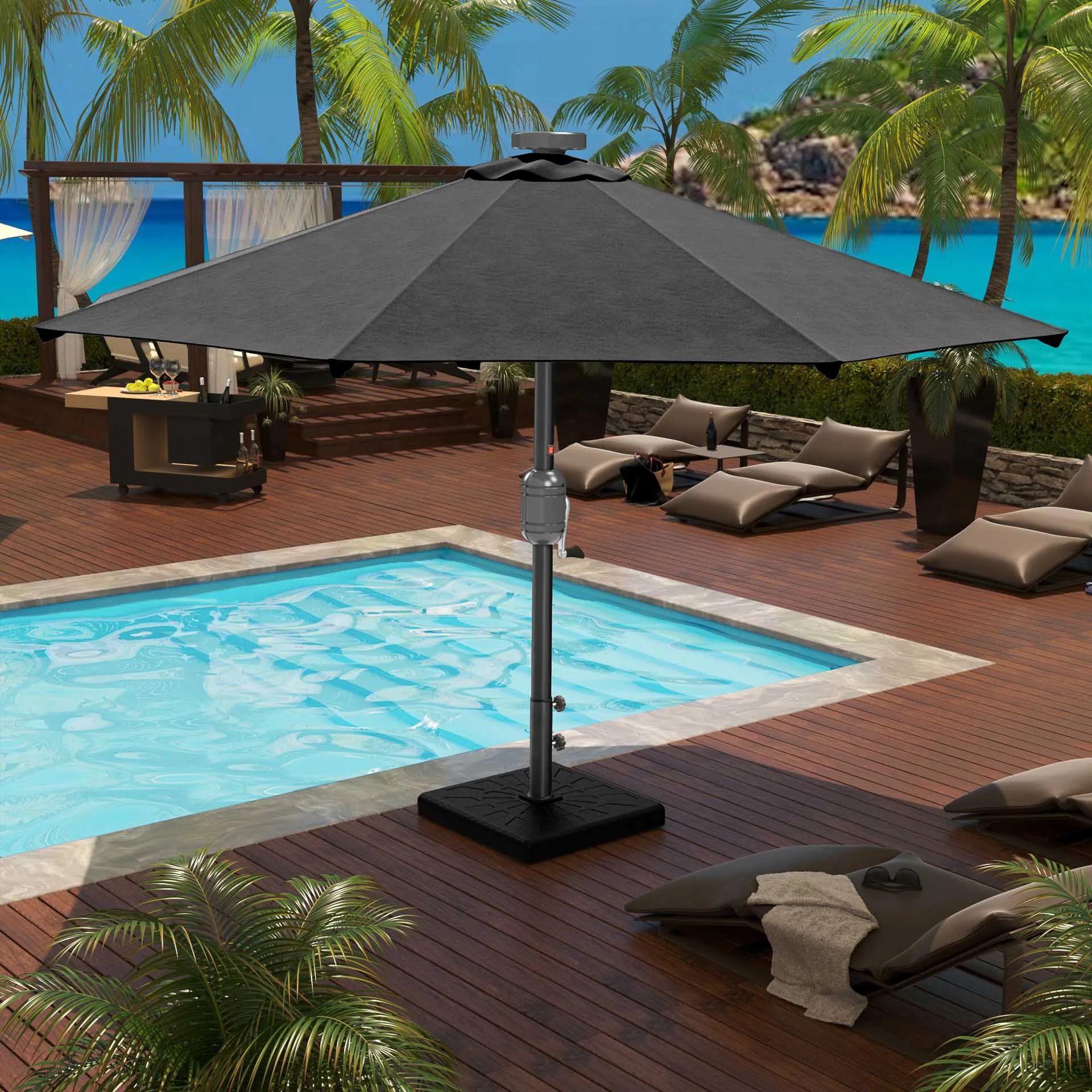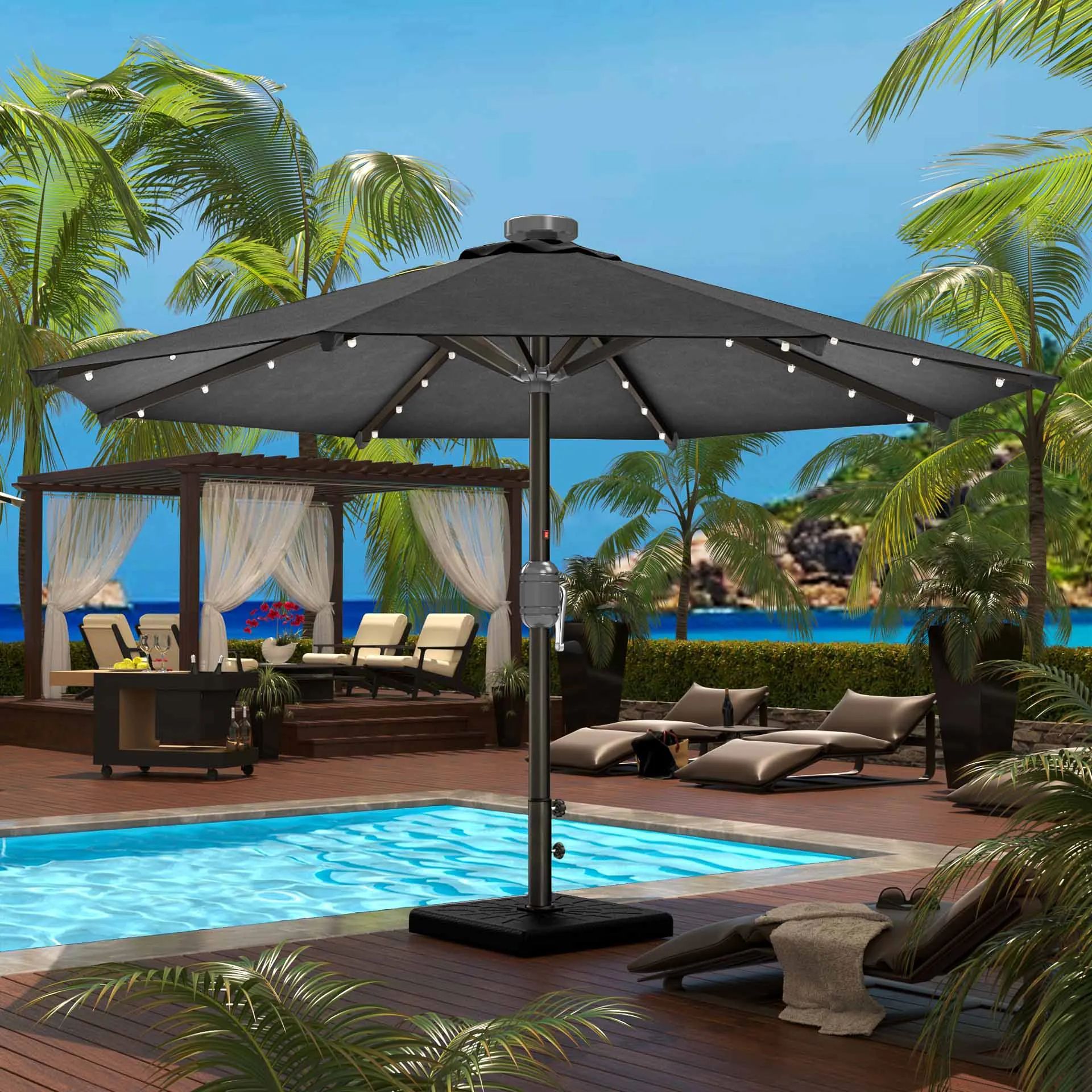 SUN MARINO | Sonnenschirm | Rund | Ø 300 cm | Schwarz | LED | Ampelschirm, Marktschi