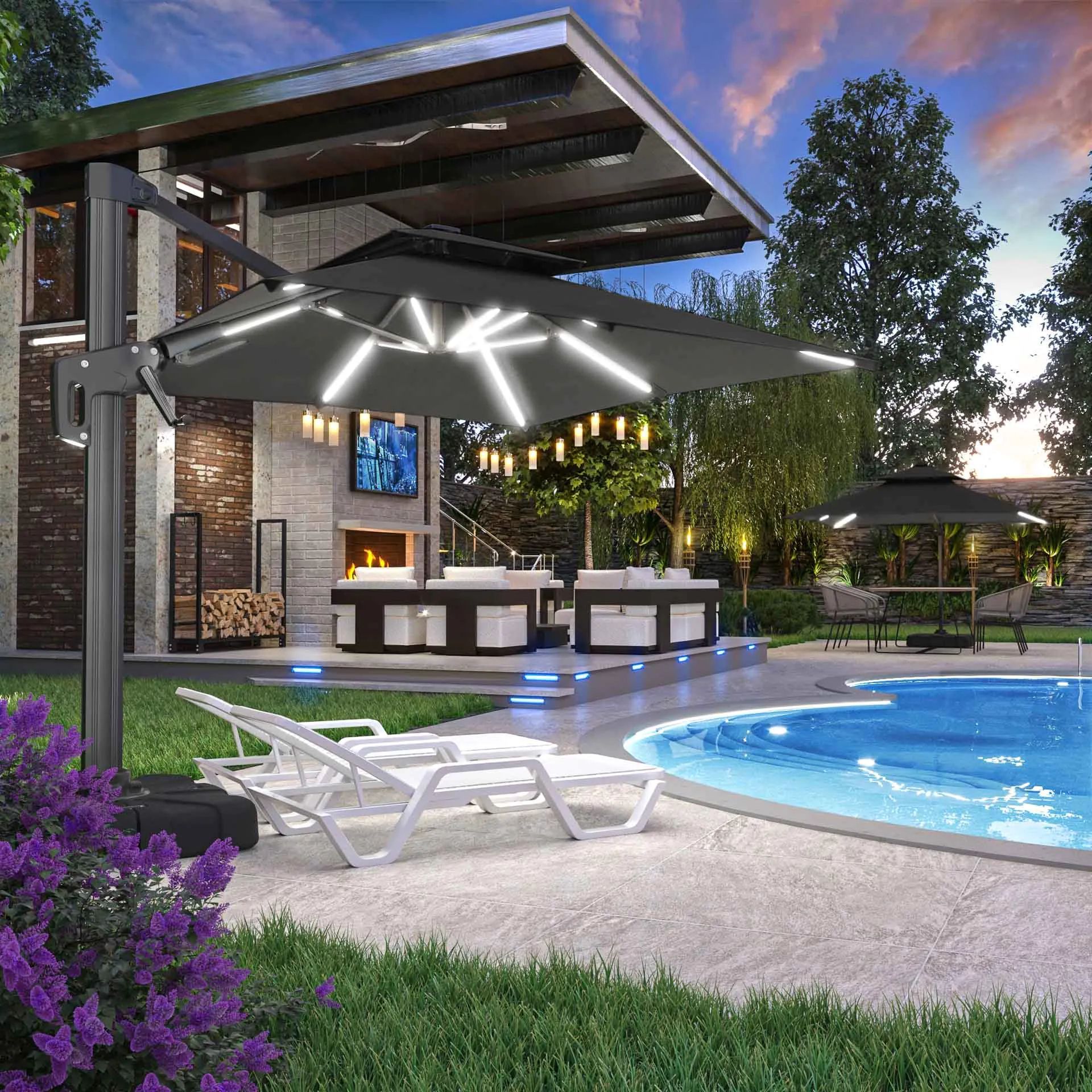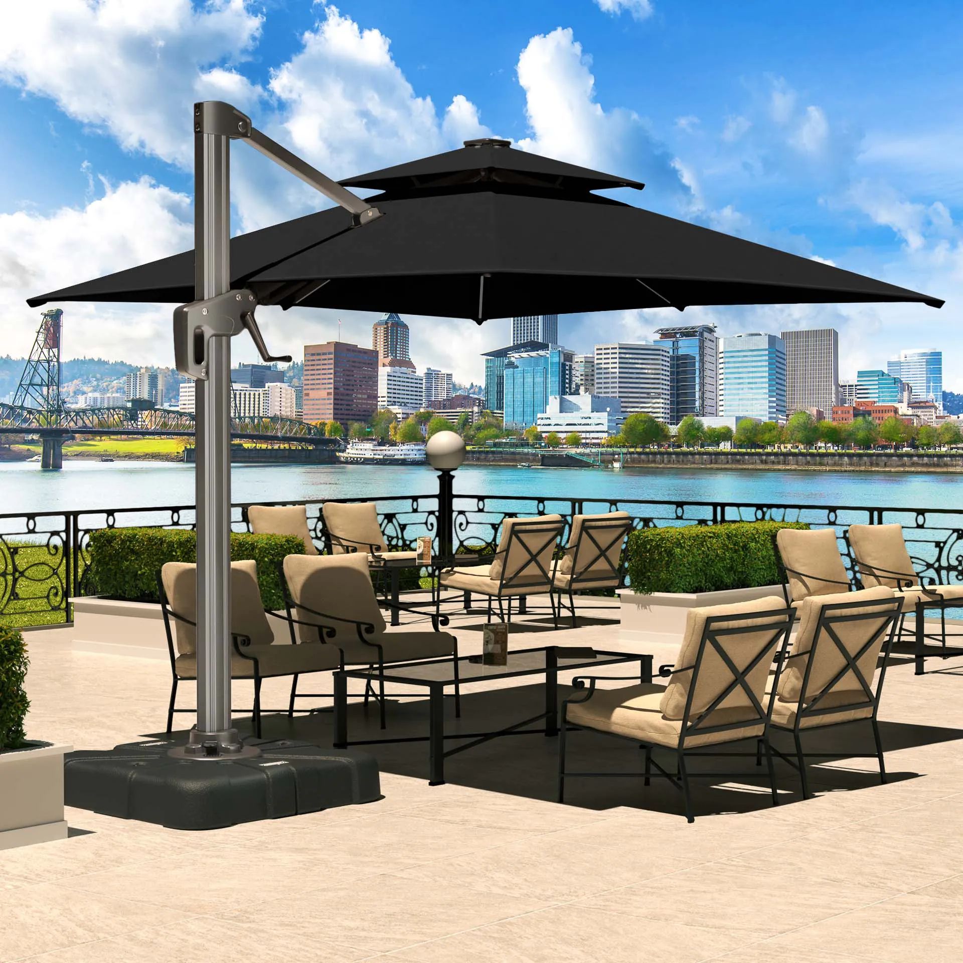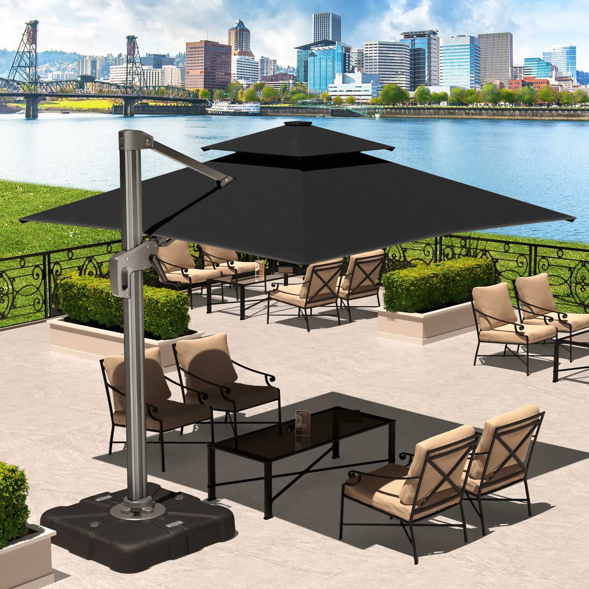 SUN PIETRO | Sonnenschirm | Quadratisch | B: 300 x 300 cm | Schwarz | LED | Ampelsc