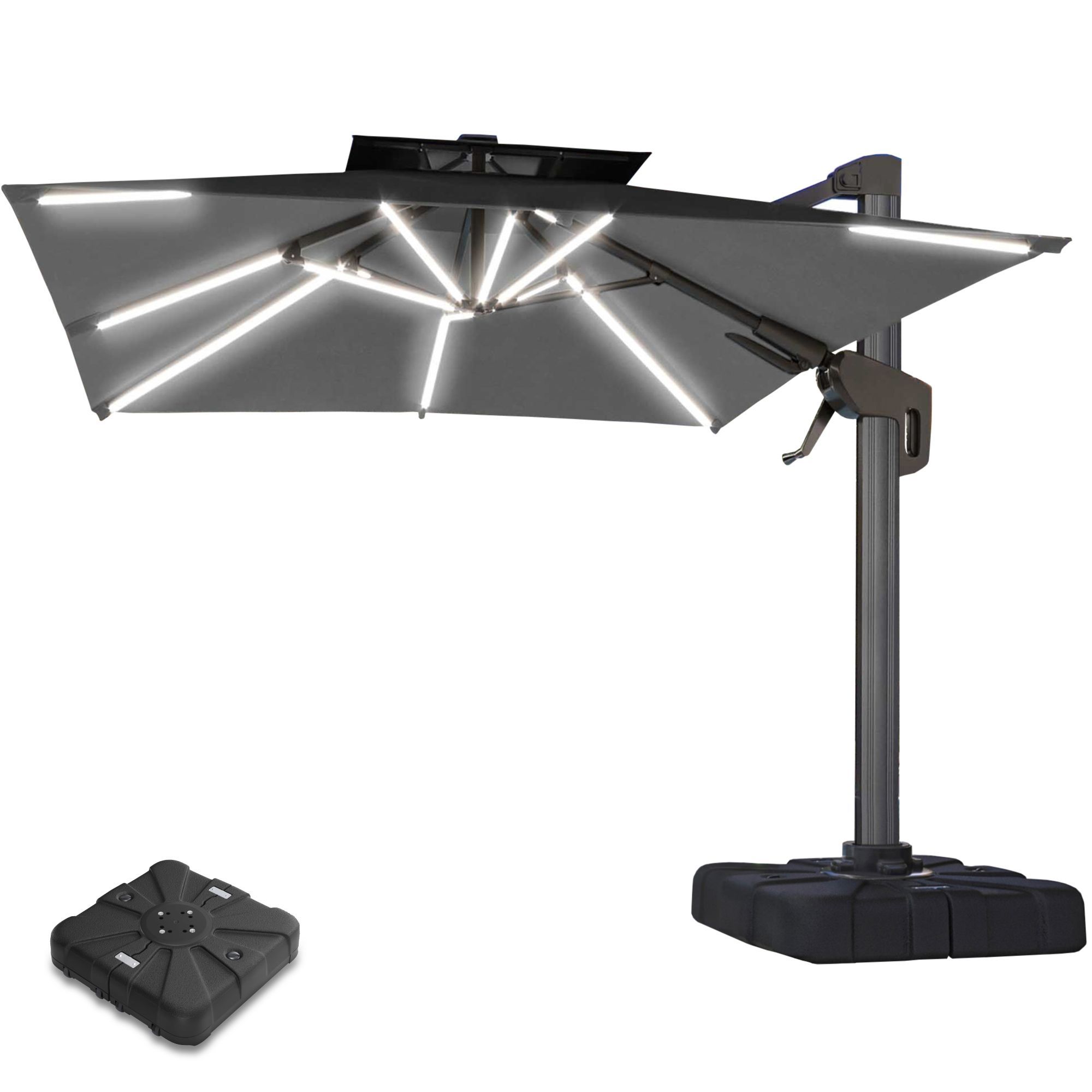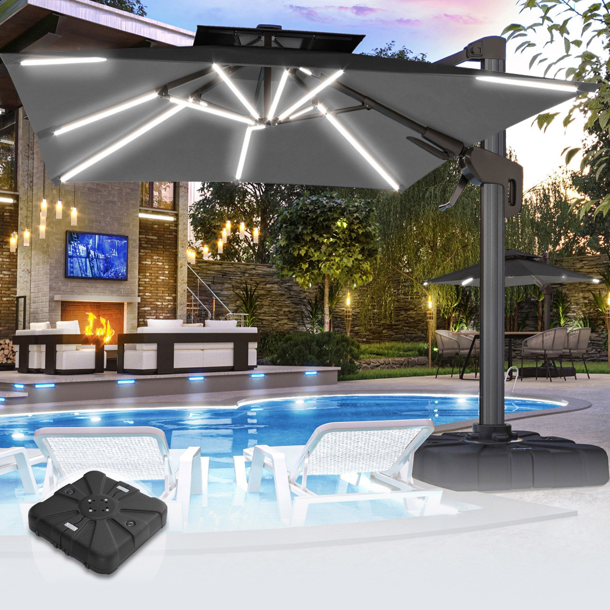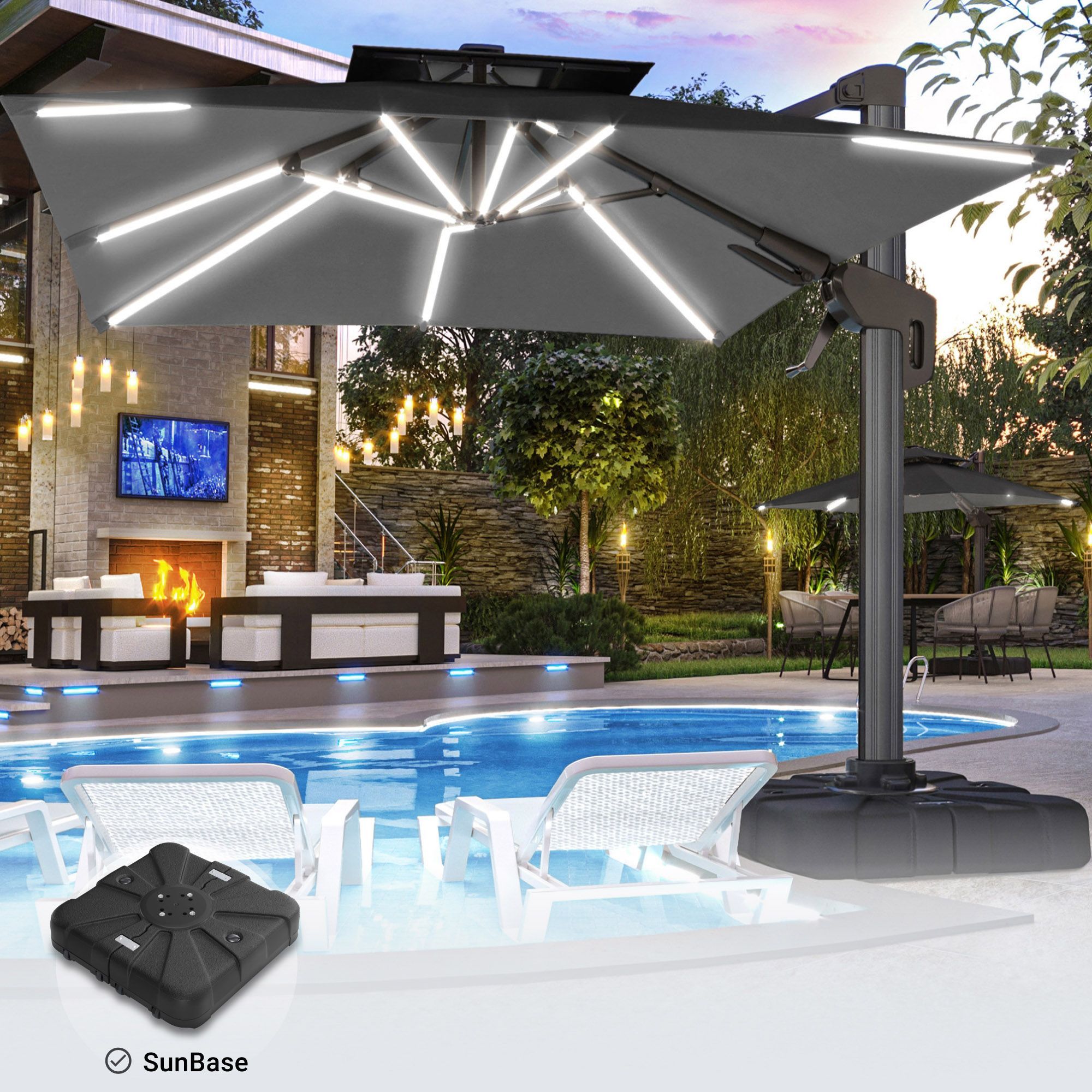SUN PIETRO | Sonnenschirm | Quadratisch | B: 300 x 300 cm | Schwarz | LED | + Stände
