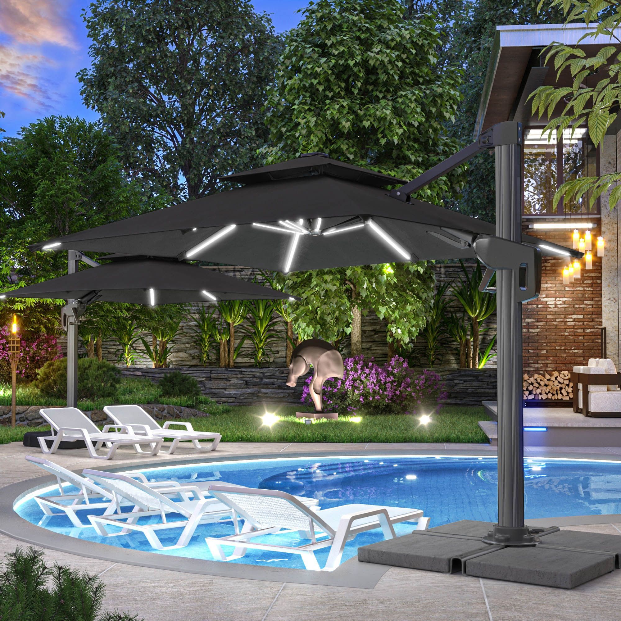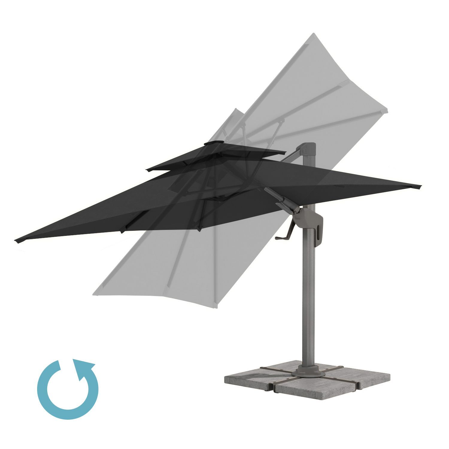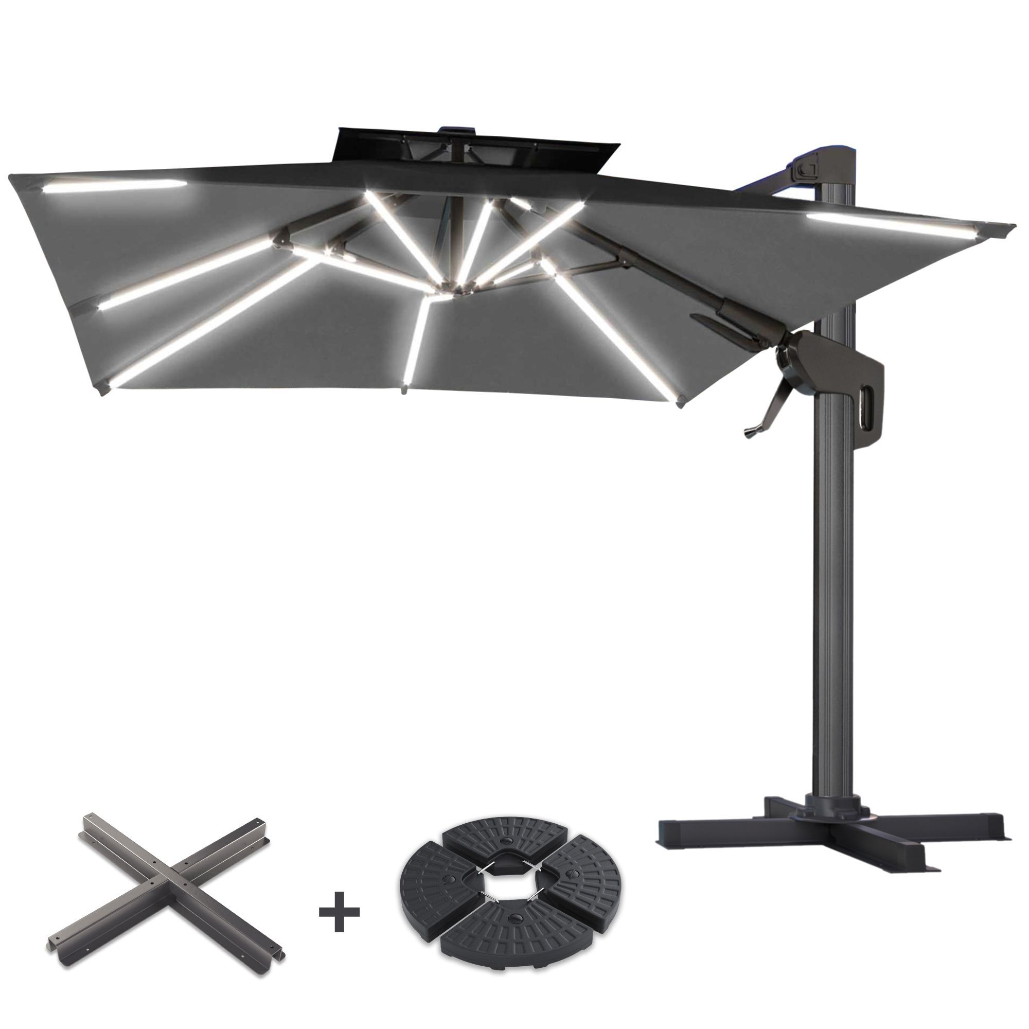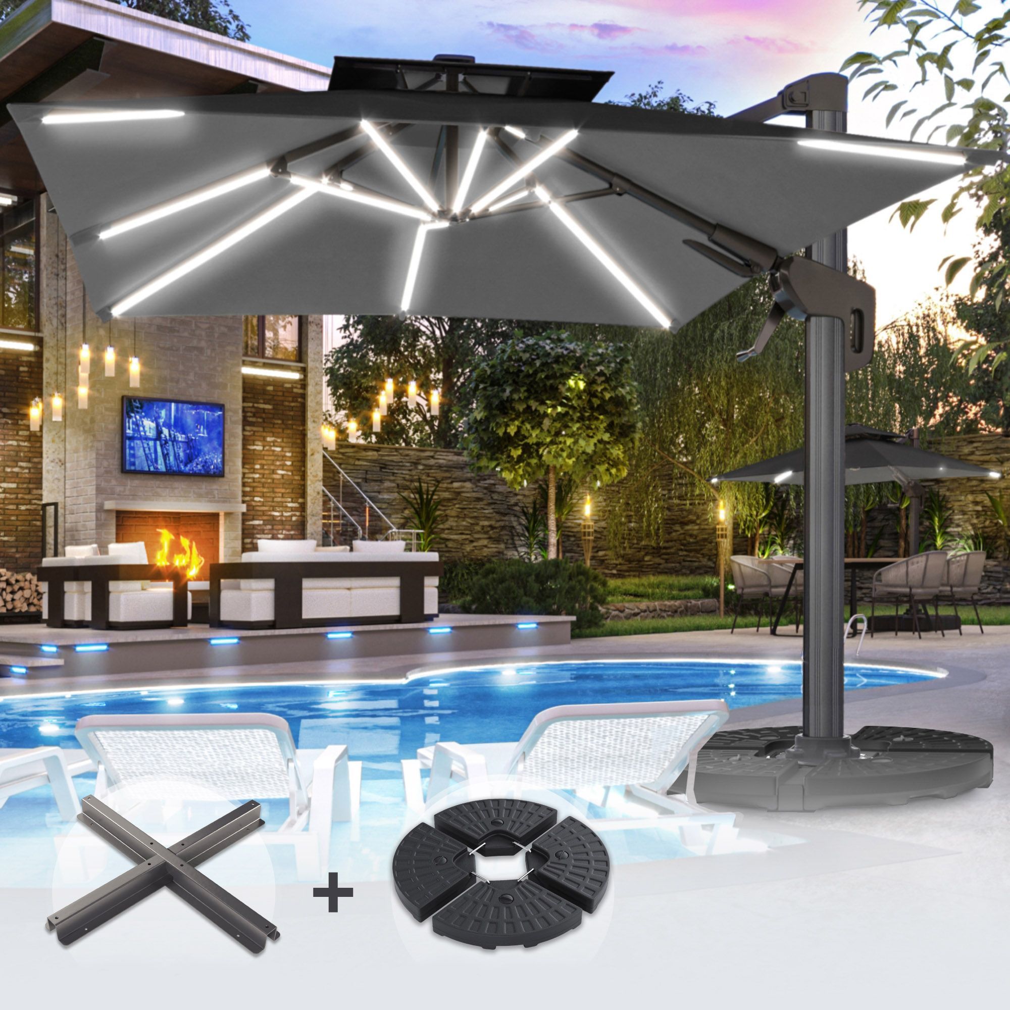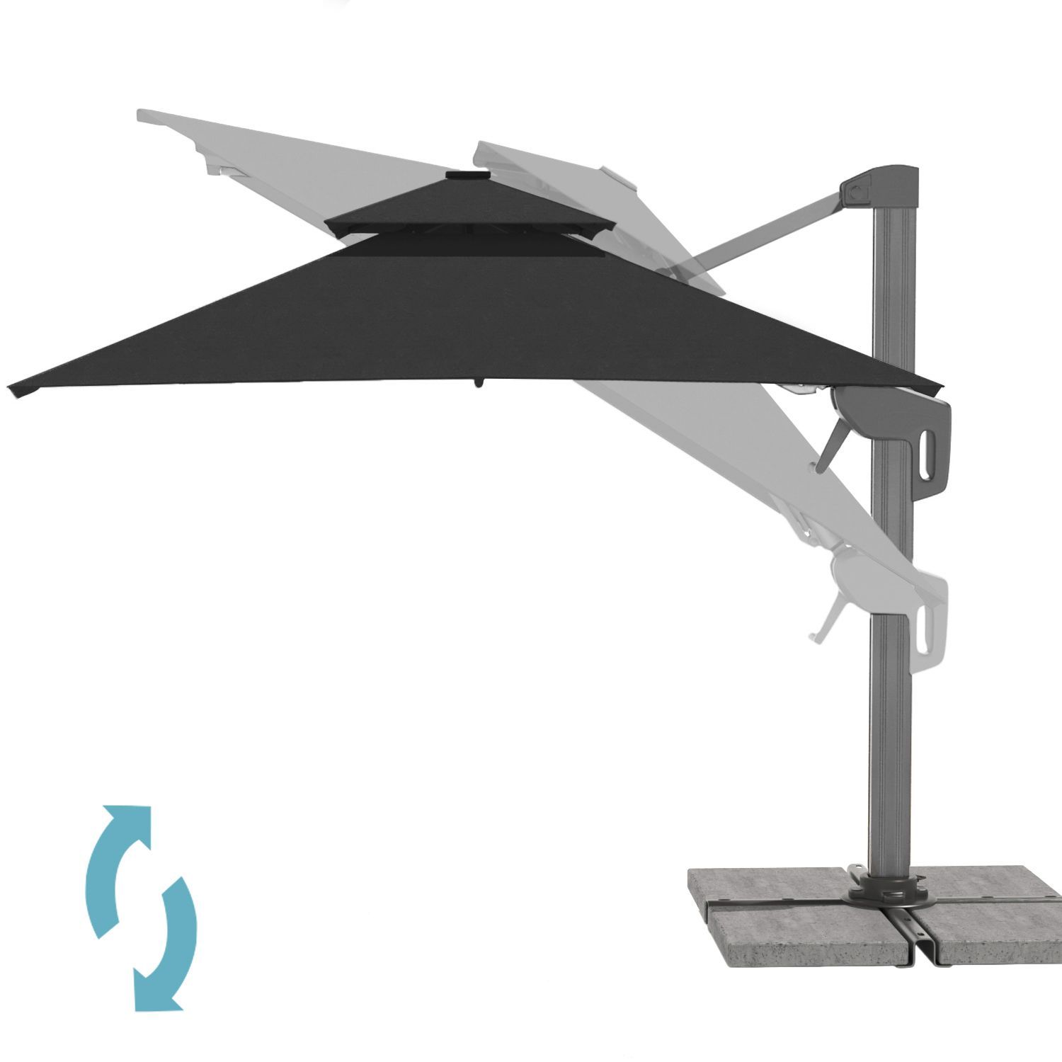SUN PIETRO | Sonnenschirm | Quadratisch | B: 300 x 300 cm | Schwarz | LED | + Stände