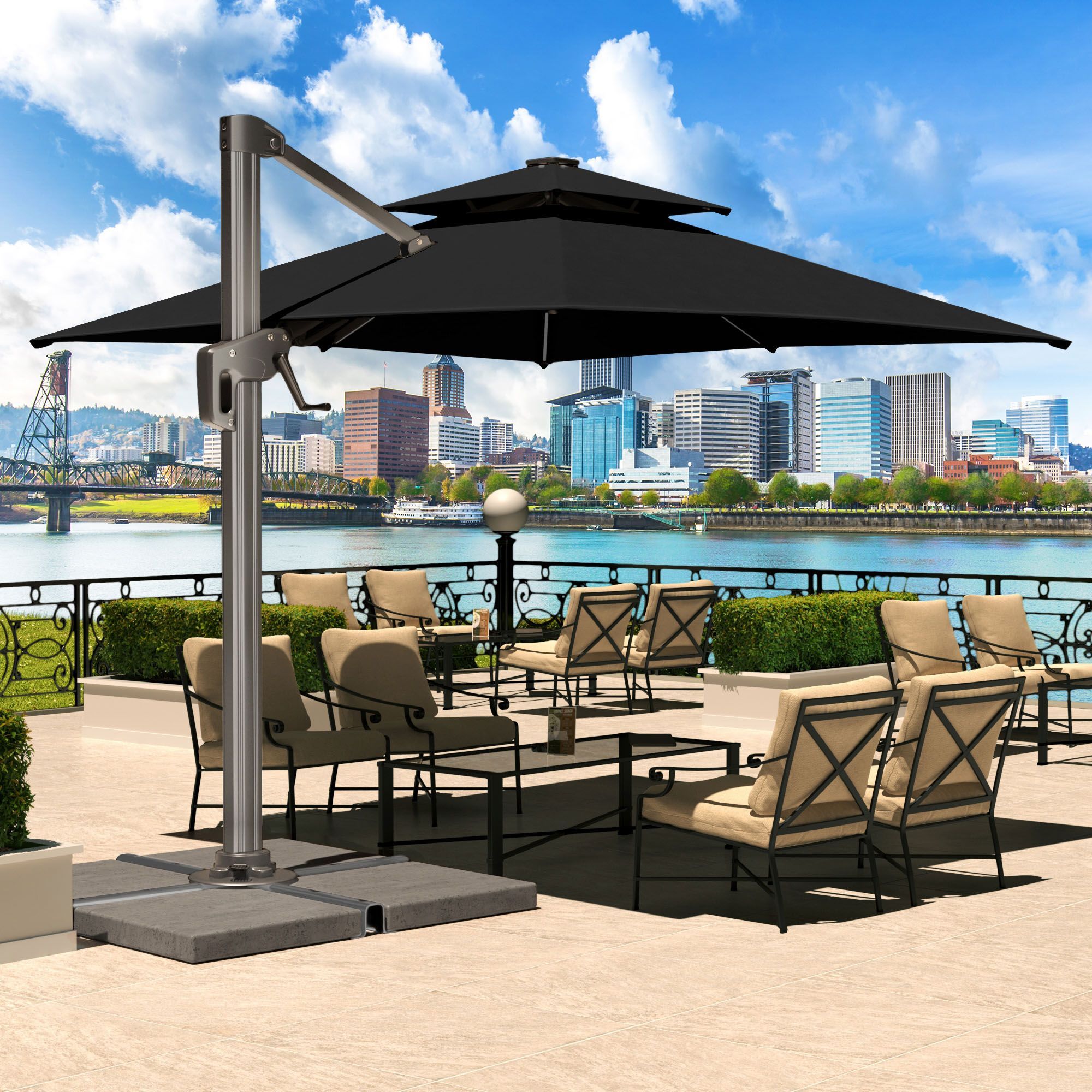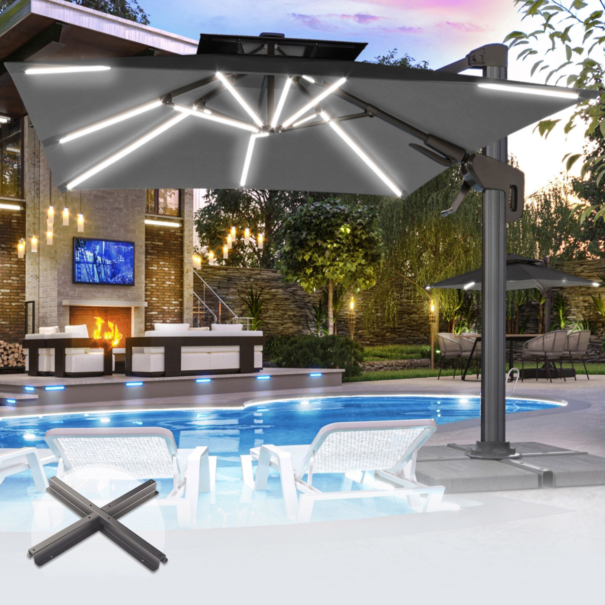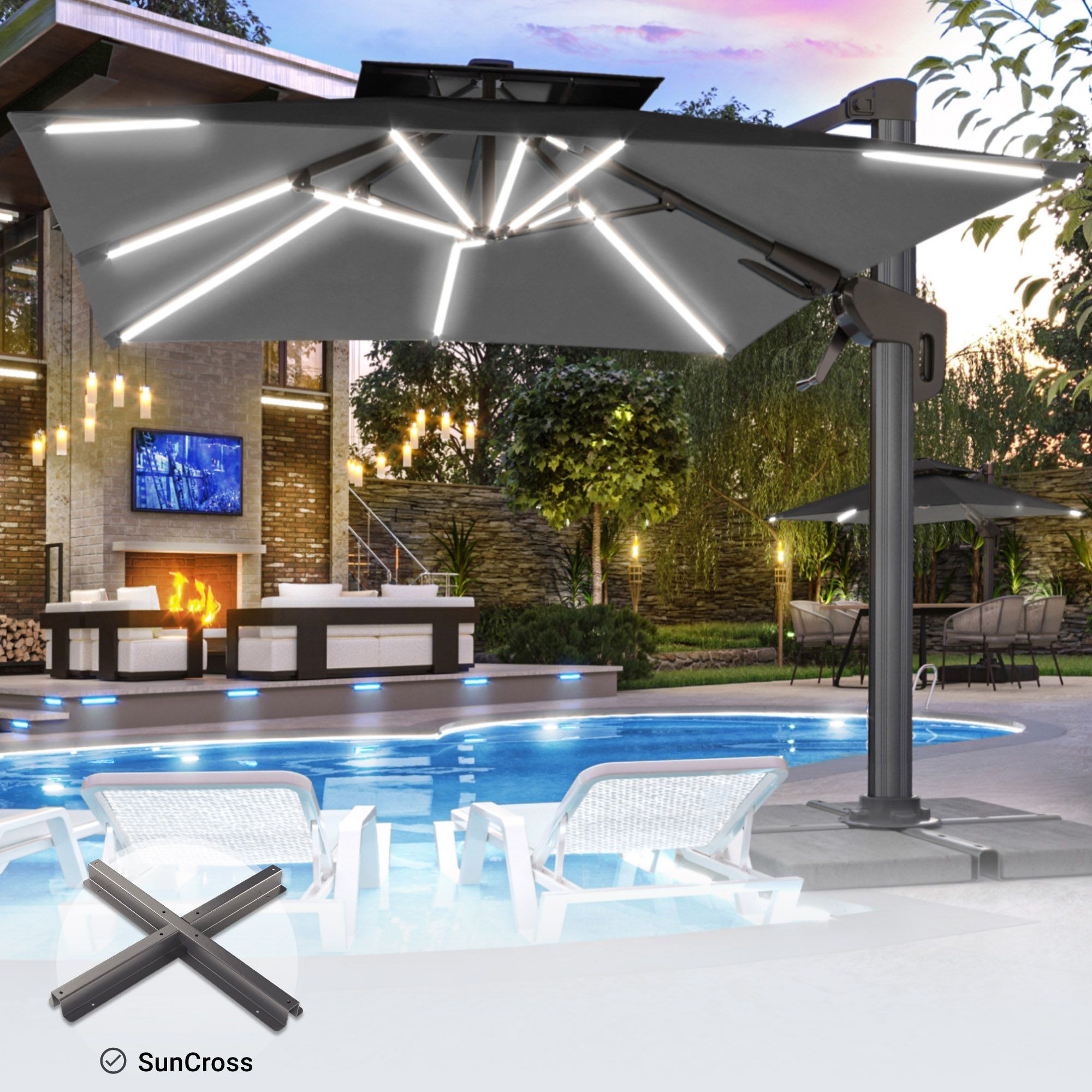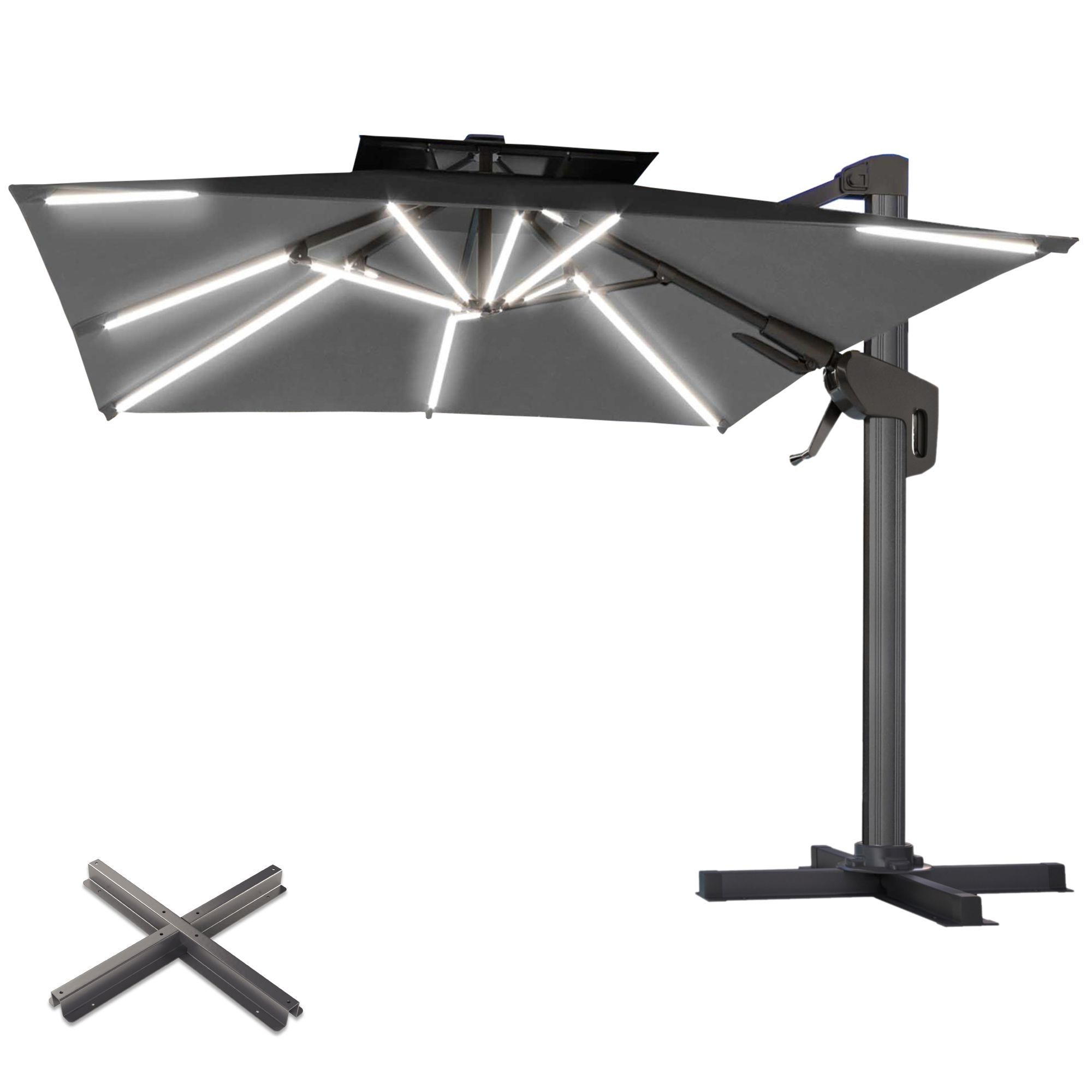 SUN PIETRO | Sonnenschirm | Quadratisch | B: 300 x 300 cm | Schwarz | LED | + Stände