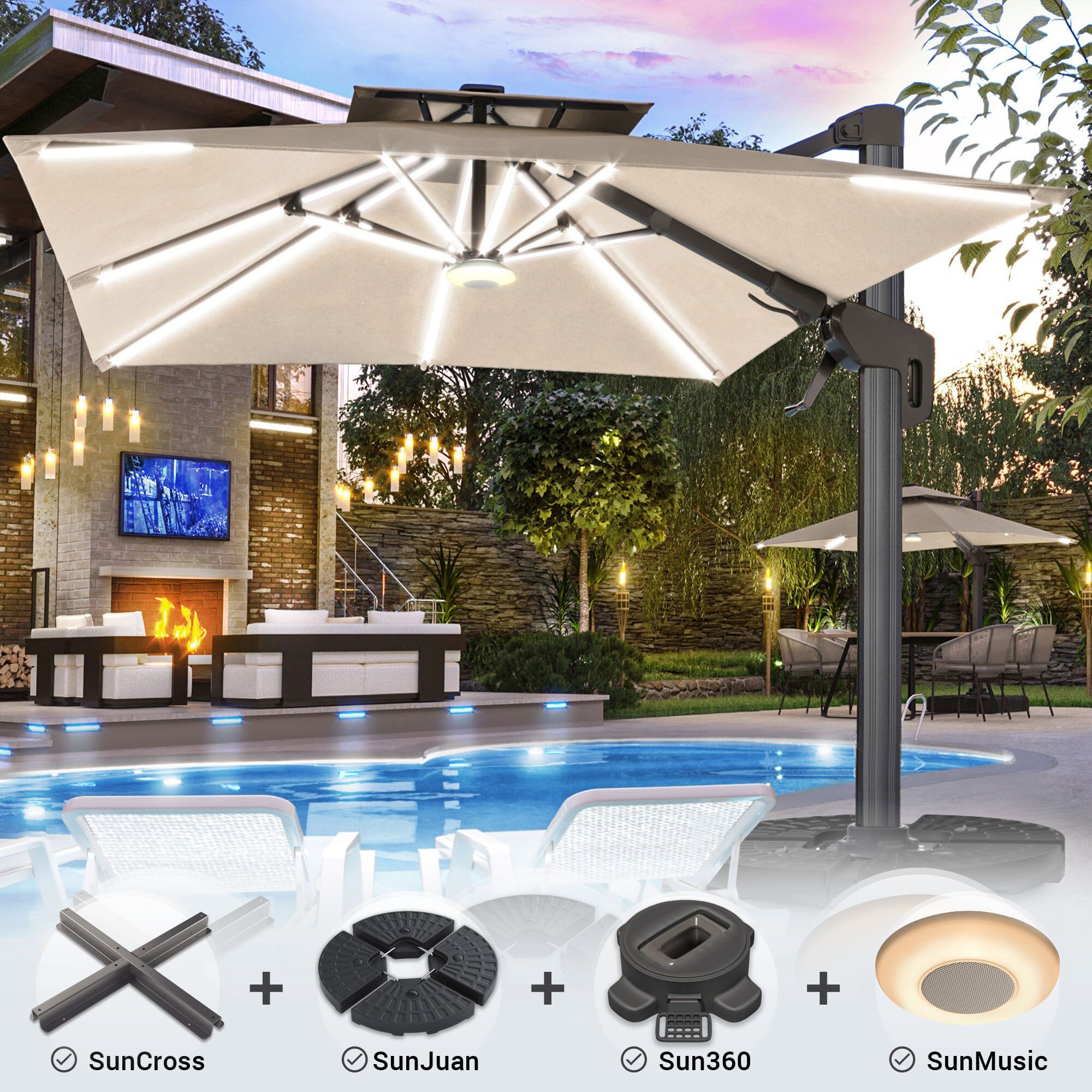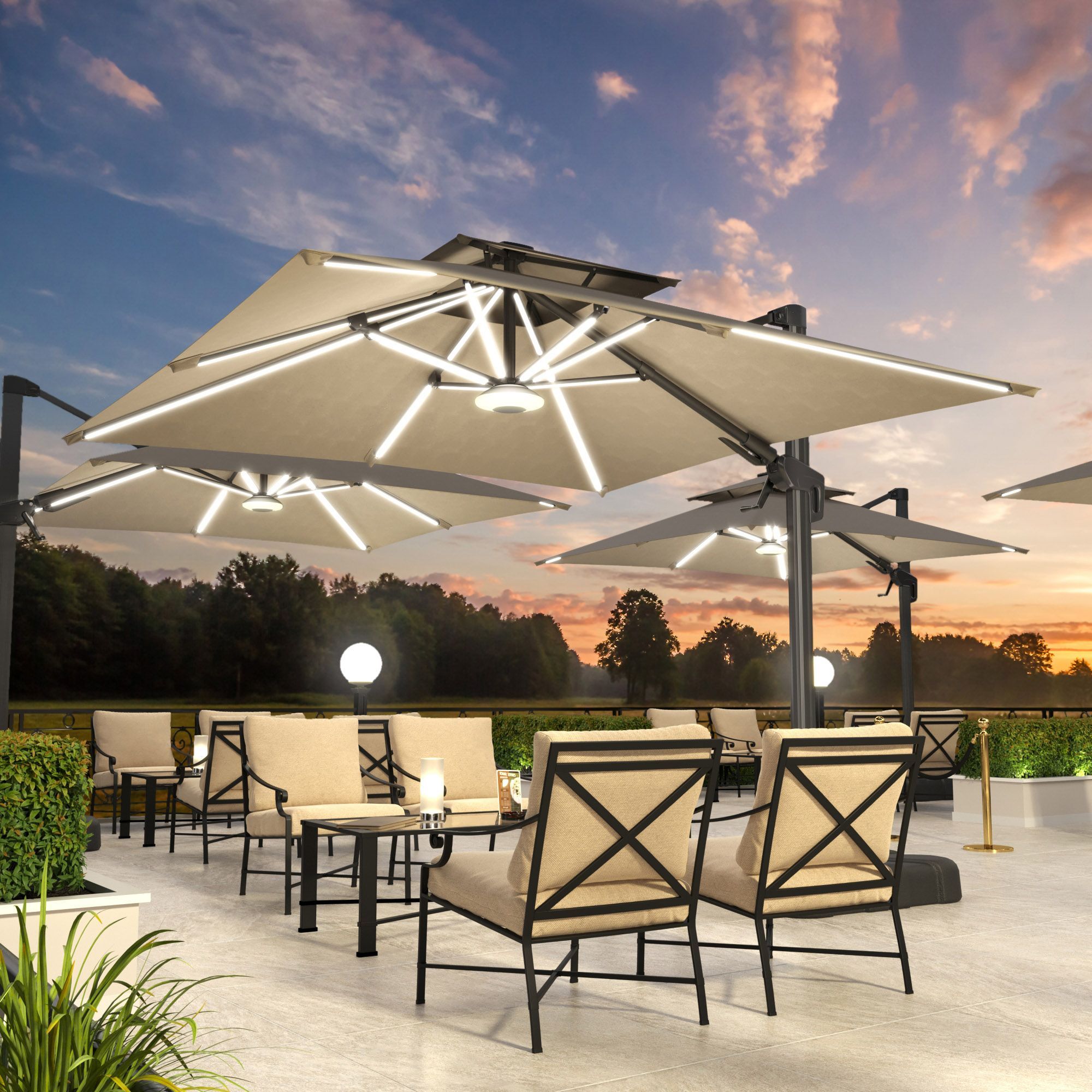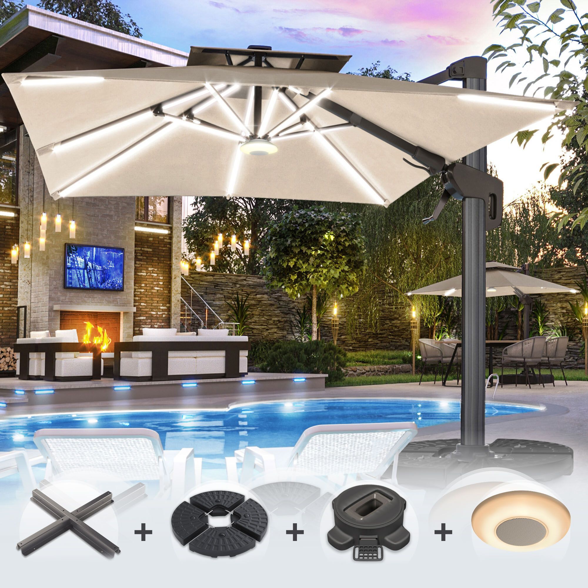 SUN PIETRO | Sonnenschirm | Quadratisch | B: 300 x 300 cm | Taupe | LED | + Ständer,