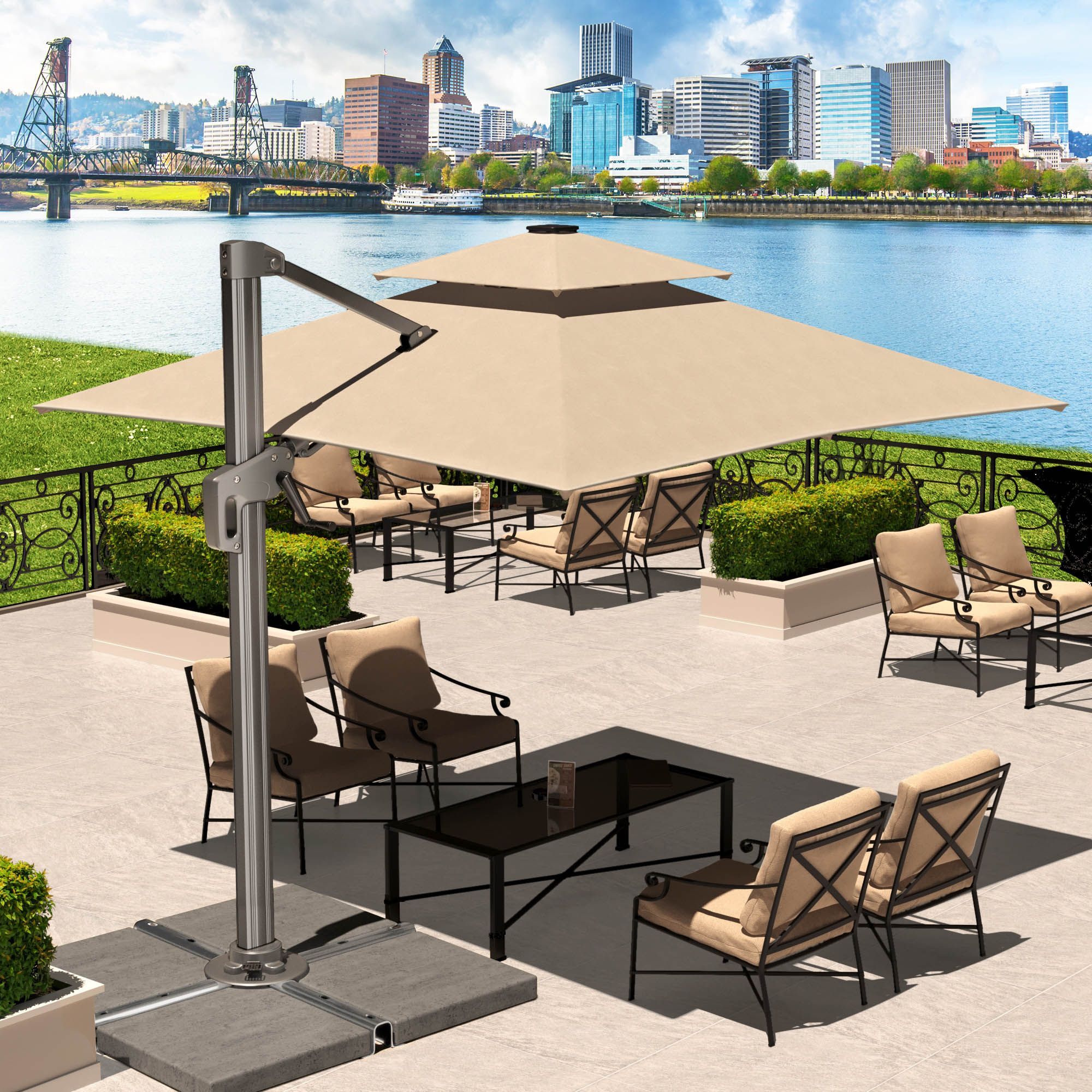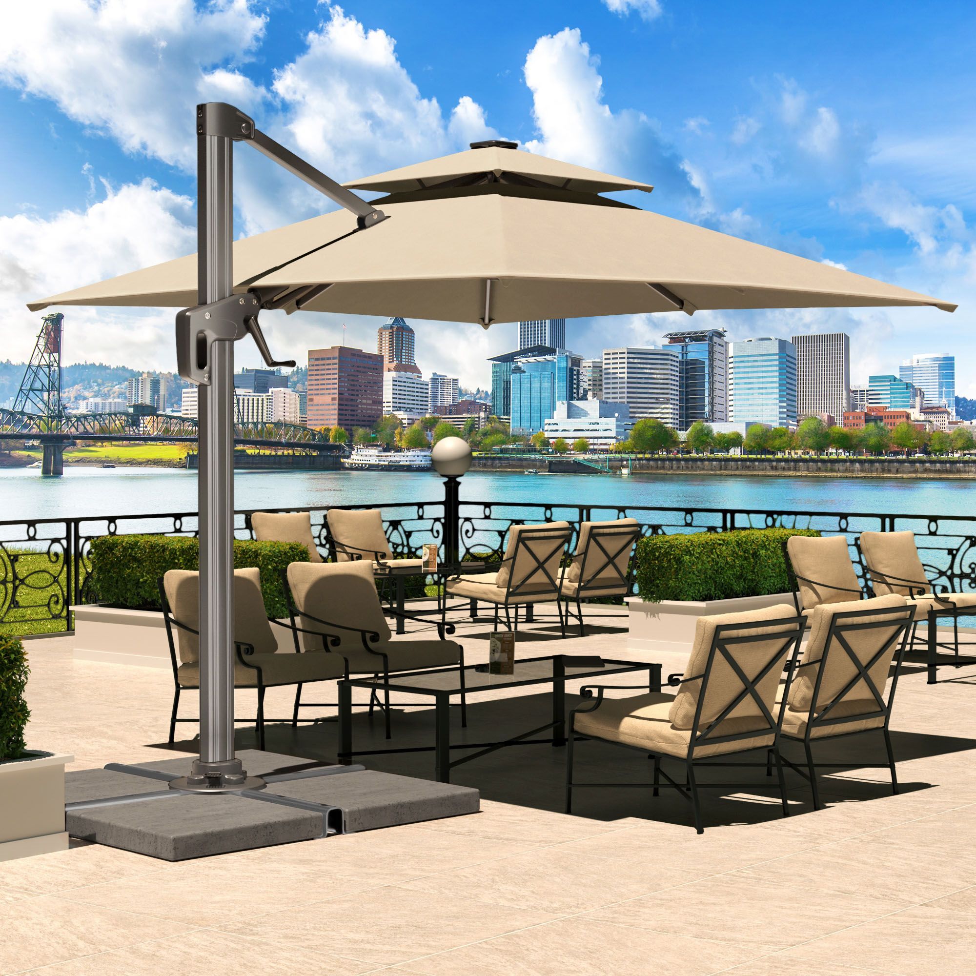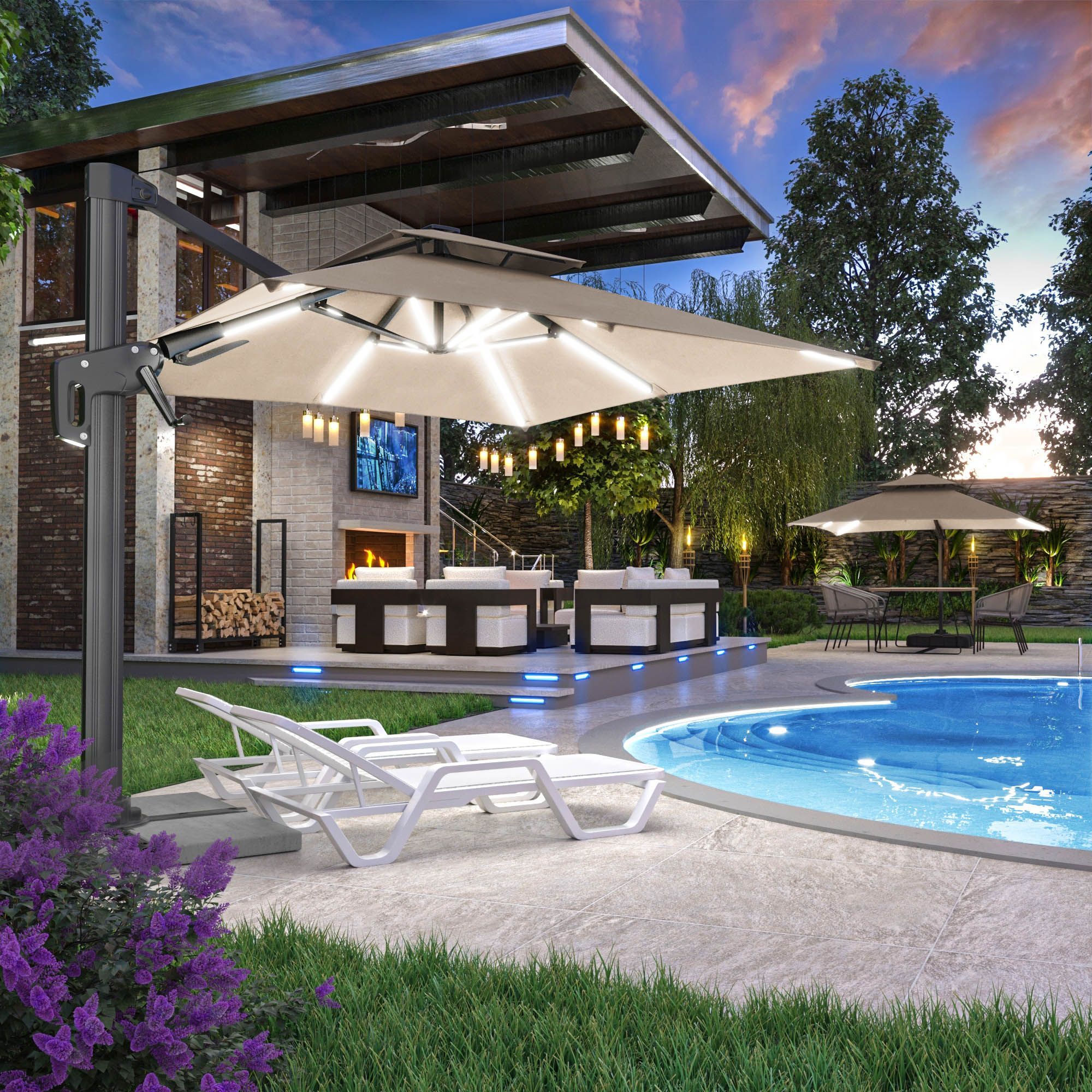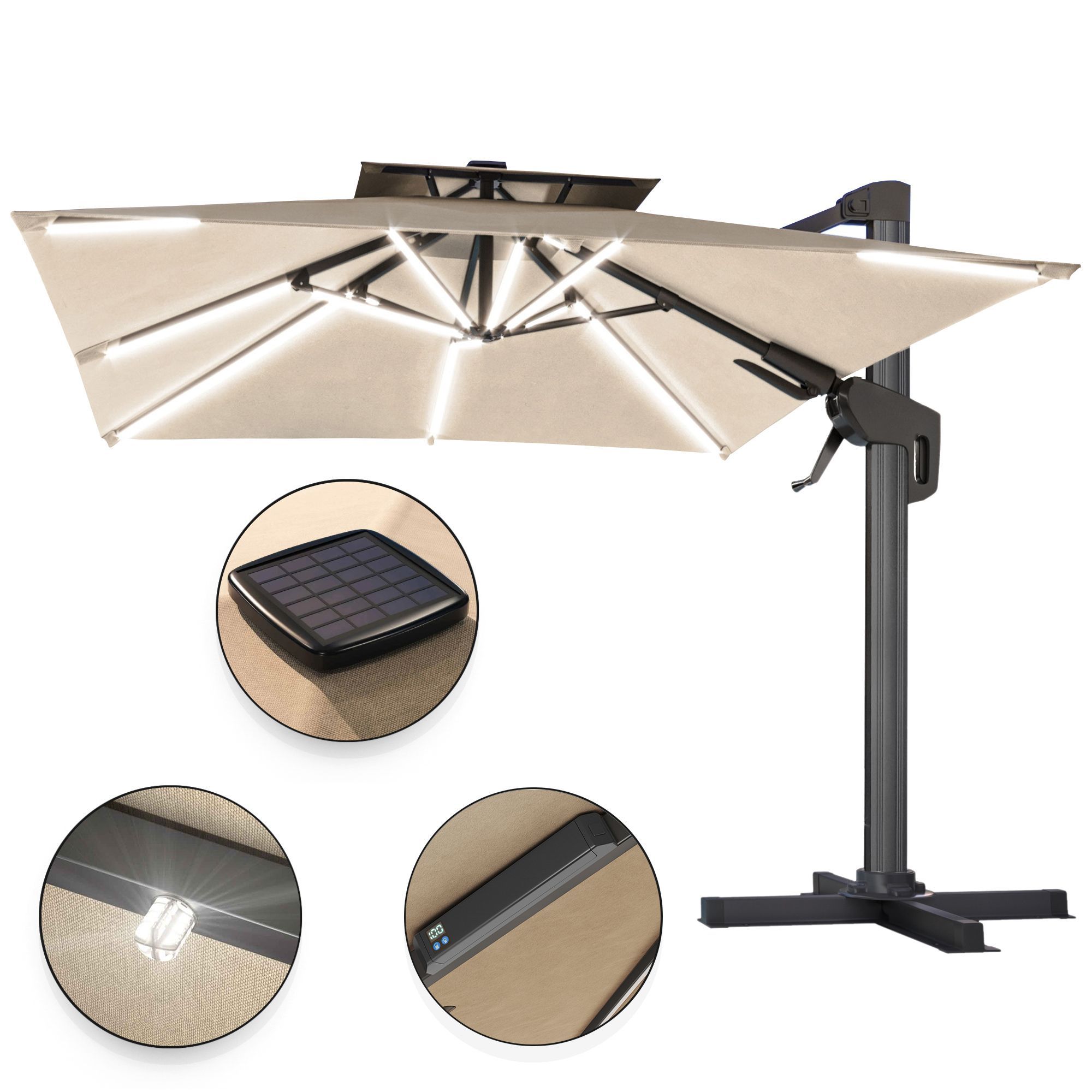 SUN PIETRO | Sonnenschirm | Quadratisch | B: 300 x 300 cm | Taupe | LED | + Ständer