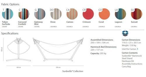 Sunbrella Doppelhängematte Hängematte Vivere C8SUN mit Gestell