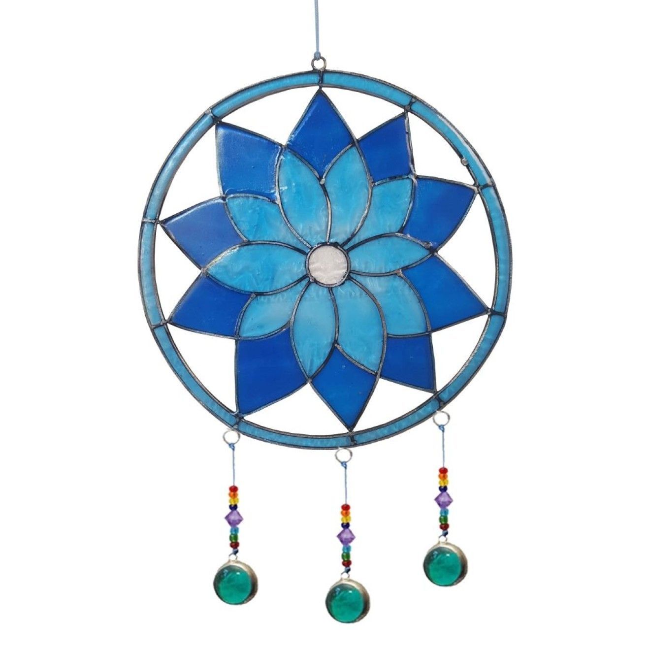 Saraswati Suncatcher LOTUS CHAKRA Resin blau 15 x 35 cm Windspiel Mobile