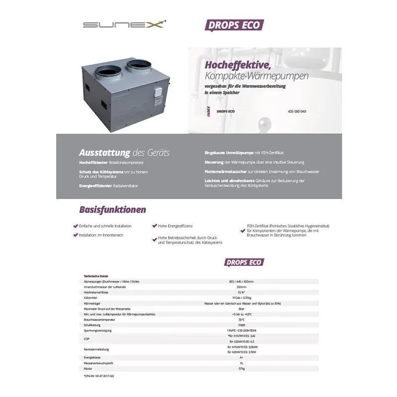 SUNEX® Warmwasser-Wärmepumpe DROPS ECO 3,6 kW Brauchwasser Trinkwasser Heizung