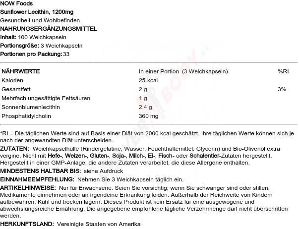 NOW Foods Sunflower Lecithin, 1200mg - 200 softgels