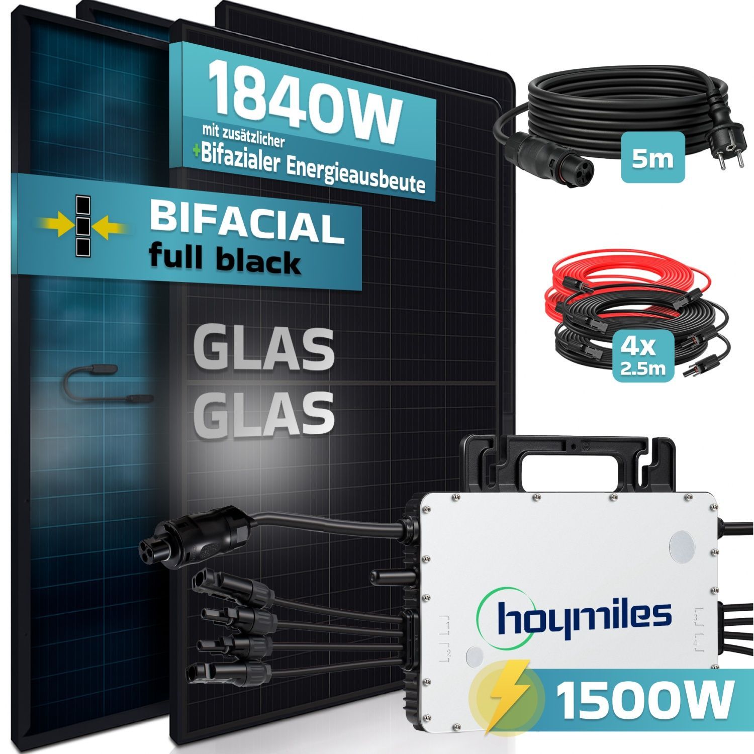 SUNNIVA® Balkonkraftwerk 1840/1500W Solaranlage Hoymiles 1500 Bifazial Fullblack
